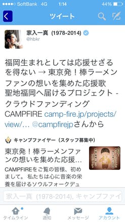 2014/11/19 01:17こんばんは!音夢食堂です! さぁいよいよ!!!福岡ツアーの全貌が少しずつ明らかになっていきます!! 福岡ツアー発表第一弾はいきなりすごい!!! なんとー!!!!! キャナルシティ博多にてスペシャルライブが決定しました!!!!!! うおーーーーーーー!!!!! 学生の頃、この噴水前ステージで幾多のメジャーアーティストのライブを見てきました。僕にとって本当に憧れの場所です。 多くの方のご協力によって実現いたしました! 12/12(金)の19時より行われます!平日ですがぜひとも多くの方にお集まりいただきたいと思っております! 今後随時ツアースケジュールを発表していきますので乞うご期待! ■■■■■■■■■■■■■■■■■■■■■■■■■■■■■■■■■■■■■■■■■■■■■■■■■■ 音夢食堂【されどみんなの棒ラーメンツアー2014】ツアー日程(決定済) ■2014/12/11(木) @マルタイ本社LIVE ■2014/12/12(金) 19:00~ @キャナルシティ博多 噴水前広場 ■■■■■■■■■■■■■■■■■■■■■■■■■■■■■■■■■■■■■■■■■■■■■■■■ こんな重大発表の日は棒ラーメンバトンもすごい! 何と!!!! 都知事選にも出馬されていらっしゃった家入一馬さんに応援ツイートしていただきました。 そう!何を隠そうこのキャンプファイアを立ち上げた、福岡出身の実業家なのでございますm(__)m 本当にビックリな棒ラーメンバトンでした。 明日はだれに繋がってくれるか楽しみだ!! ではまた明日!!m(__)m もっと見る
