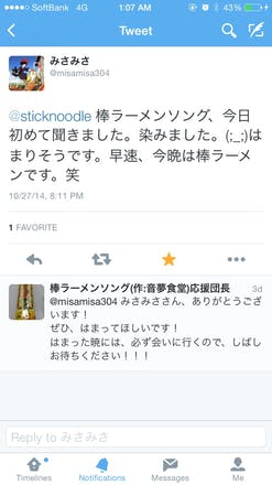 さて、本プロジェクトでは、Twitter上で棒ラーメンソング応援団長がこの活動を広めるべく奮闘してくれております。