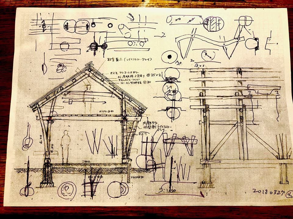 2019/04/22 23:24木こりビルダーズ計画、活動の進捗です。基本となる小屋の構造がだいたい決まってきました。自分のラフスケッチをもとに、山脇克彦建築構造設計さんのご厚意で設計していただきました!!!画像は、みっちり打ち合わせたメモです。ヤマから出しやすい4、6mの丸太をメインに、8m、10mなどの細丸太も少し使う想定です。やっと雪が解けたので、この図面の丸太組みを組んでテストします。地上でこの五角形を組みたて、人力でパタン!と起こし、次々起こしてから横につなぎます。また進み次第お知らせします。。。。毎日の現場作業に追われ、なかなかご報告できてませんが、一歩ずつ進んでます!明日はいよいよ製材機を引き取りに行きます!!まだ設置場所の整備(準備)の段階なので動きませんが・・・・設置場所はまずは林業の相棒、out woods足立成亮の用意した札幌の土場です。楽しみです!!!!!秋以降は、自分の旭川拠点にも設置場所を用意する予定です。 もっと見る