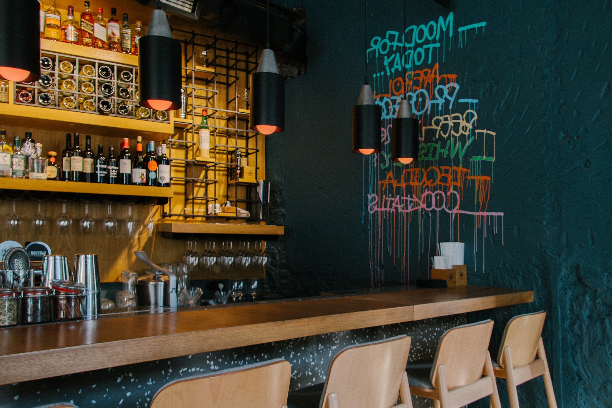 その機能を満たすためには、誰もが一息つけて、自然とあいさつや会話の生まれる装置が必要…そこで思い至ったのは、誰もが店主側にも客側にも立てる「バーカウンター」でした。