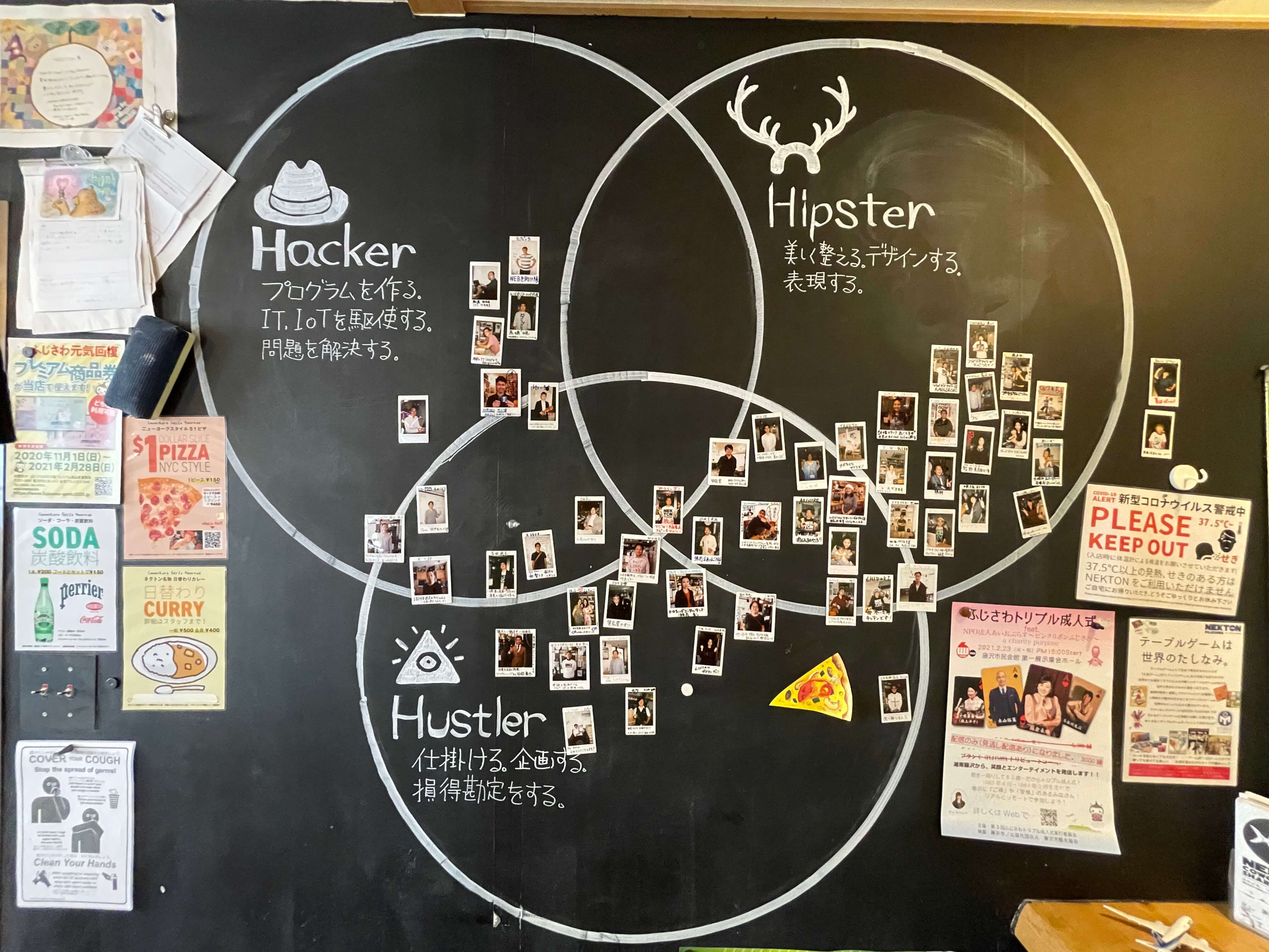 NEKTON FUJISAWAにあるベン図の会員分布図です。ハッカーはシャイな方が多いのか写真掲載少なめ!