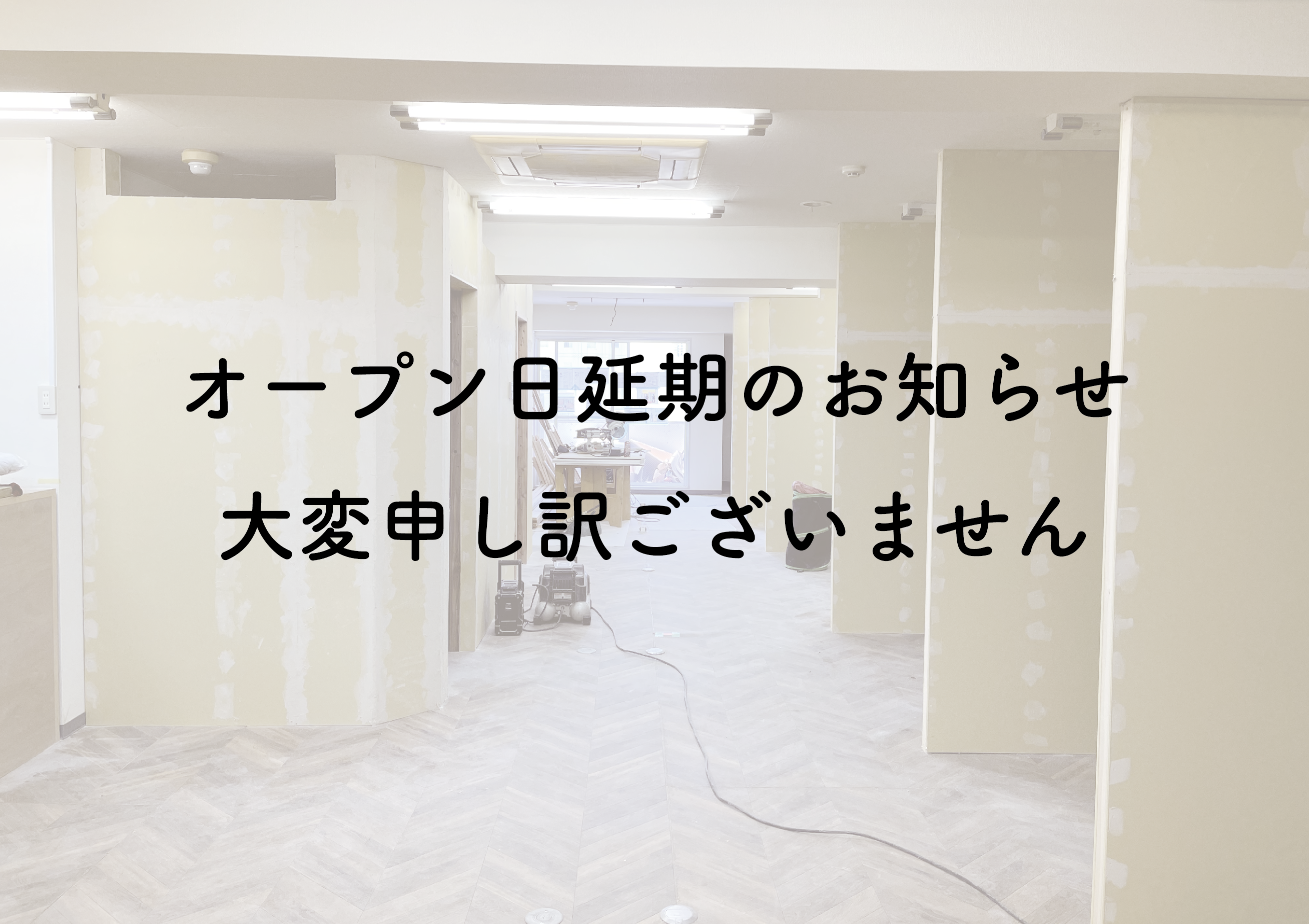 オープン予定日延期のお知らせ。5月15日になります。遅くなり大変申し訳ありません。