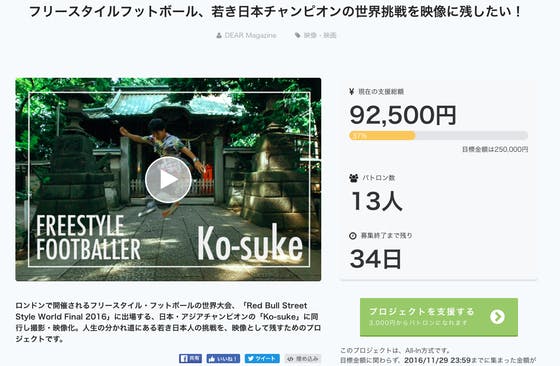 このプロジェクトは、2016/10/25に募集を開始し、 34人の支援により 264,000円の資金を集め、 2016/11/29に募集を終了しました