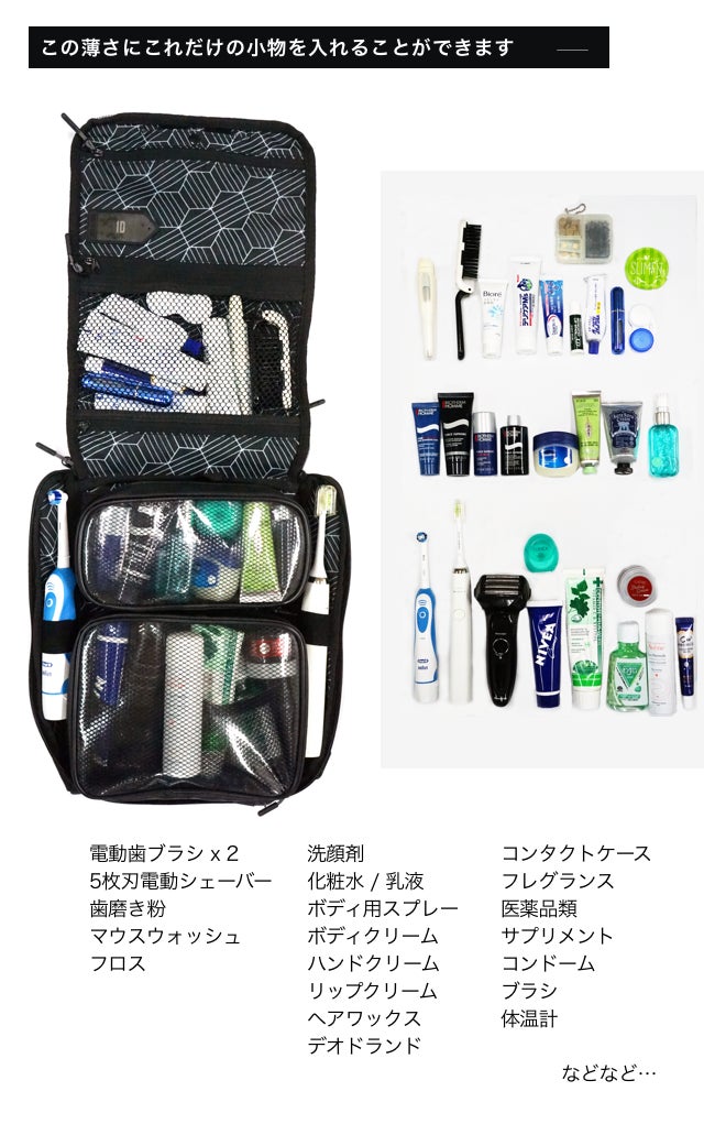 出張や旅行に小物をジップロックに入れて持ち歩いていませんか?中身がごちゃごちゃになったり、液体が漏れたり、機能が使いきれなくて旅のストレスになったり。「TRAVEL PACKER(トラベルパッカー)」は出張はもちろん、カップルでの旅行時に自分だけの旅スタイルに合わせて小物を収納できる世界最薄クラスのトラベルポーチです。