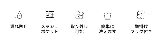 それぞれ液体の漏れ防止機能がついており、本体とはベルクロによって固定、取り外しができます。