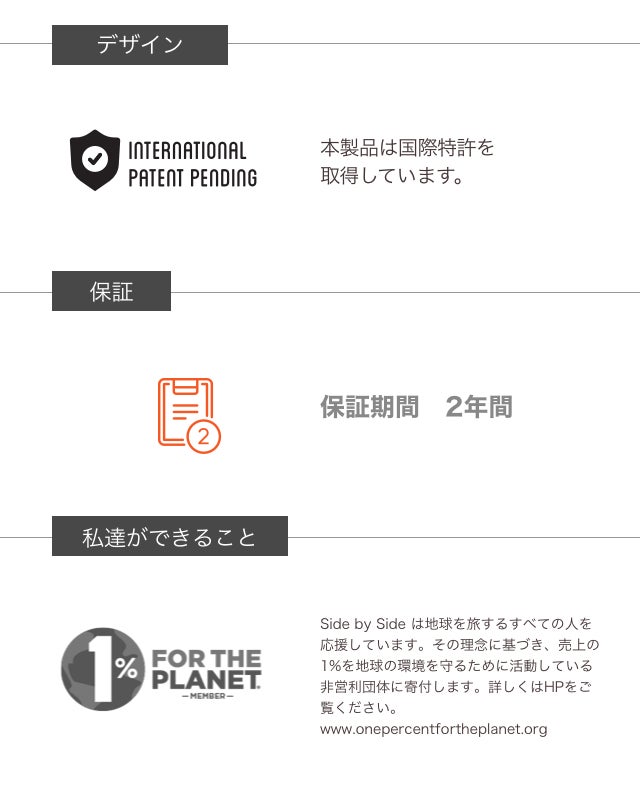 A:SIDE BY SIDEの製品はお届けから2年を保証期間とさせていただきます。修理ができない場合は新品と交換させていただきます。お問い合わせは日本の代理店、イノベ部までお問い合わせをお願いいたします。info@hands-aid.jp