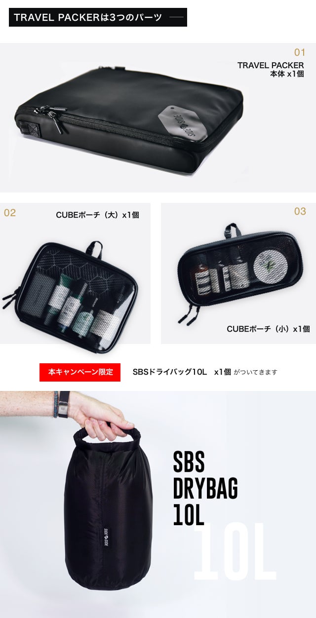 移動時にどうしてもかさばる洗濯物や、ジム用品などを収納するためにSIDEBYSIDEのロゴが入ったプレミアムドライバッグを作りました。有名アウトドアブランドにも使われているCORDURA FABRICを採用しています。TRAVEL PACKER2個セットご購入の方にはドライバッグ2個つけてお届けいたします。