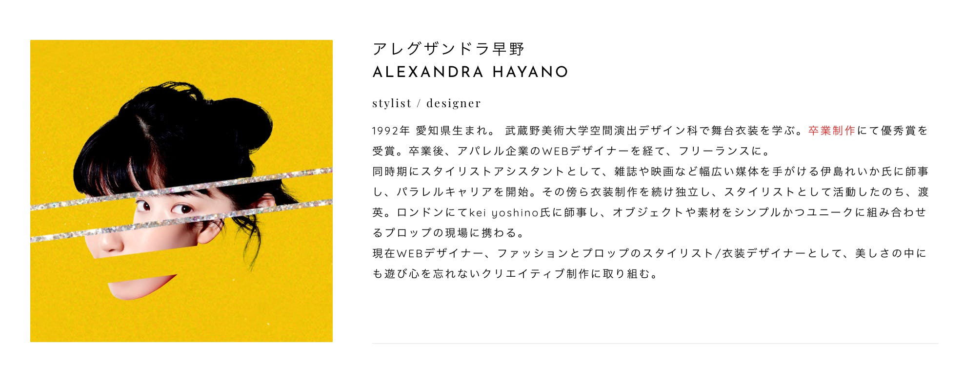 第一弾のコラボは、デザイナーのアレグザンドラ早野さん。Tシャツのデザインをお願いしました。