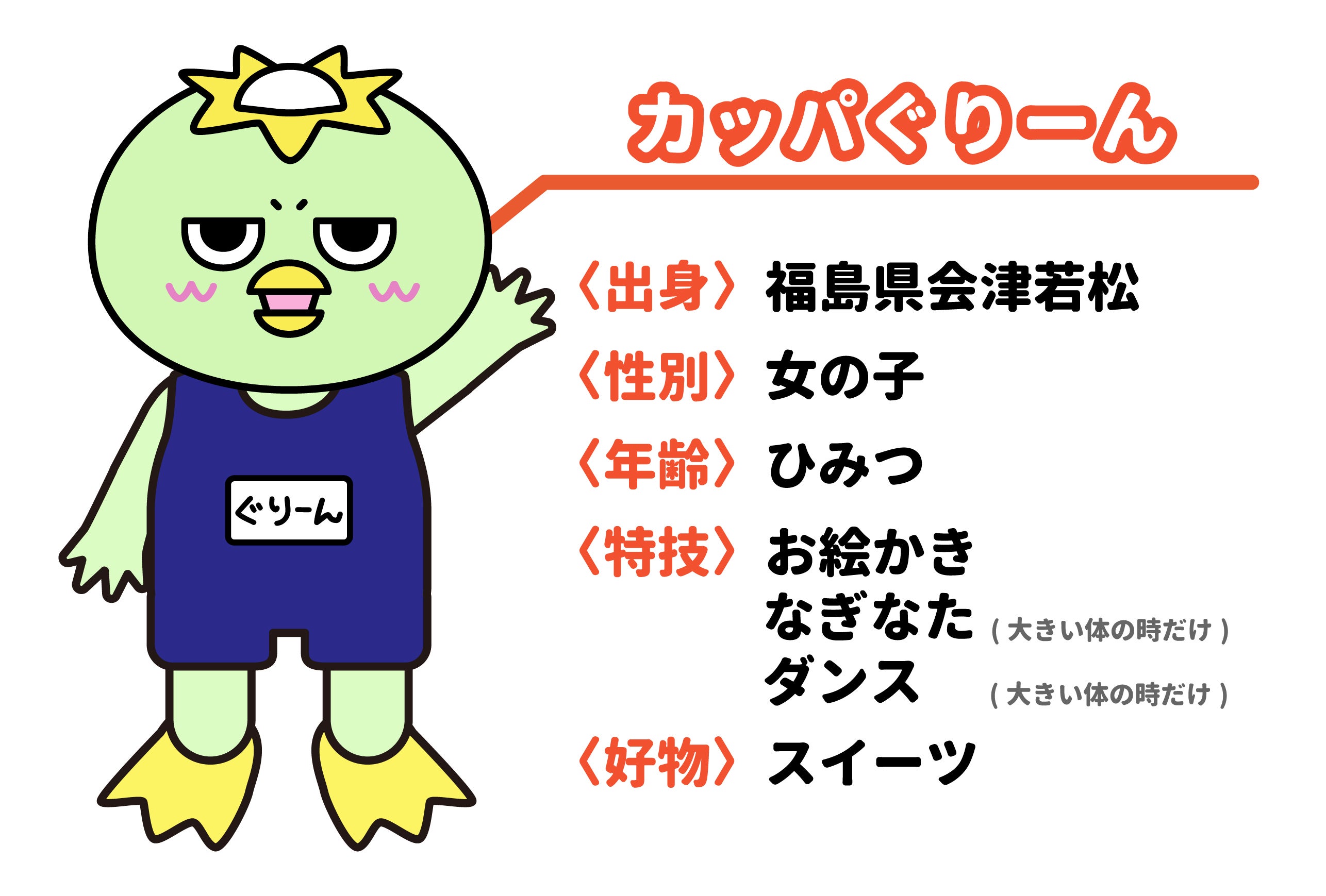 福島県会津地域にいる、個人キャラの『カッパぐりーん』と申します!(・Ӫ・) ノ