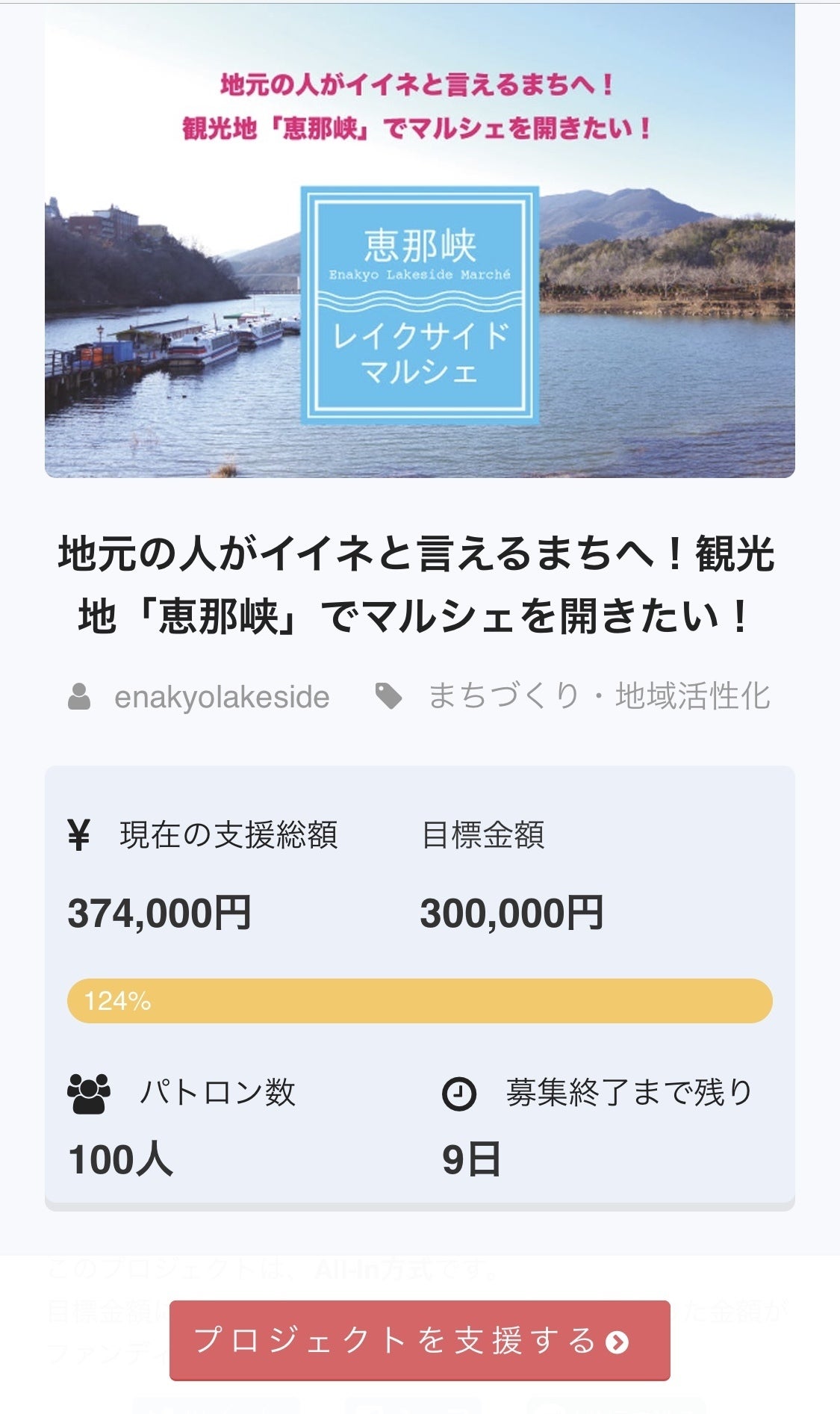 「地元の人がイイネと言えるまちへ!観光地「恵那峡」でマルシェを開きたい!」