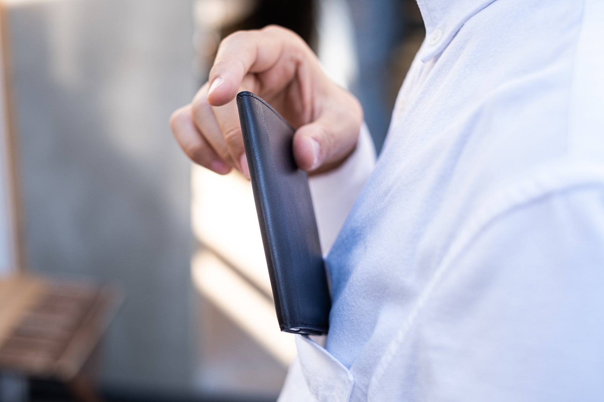 バケッタ製法オイルレザーという自然の質感たっぷりでエイジングを