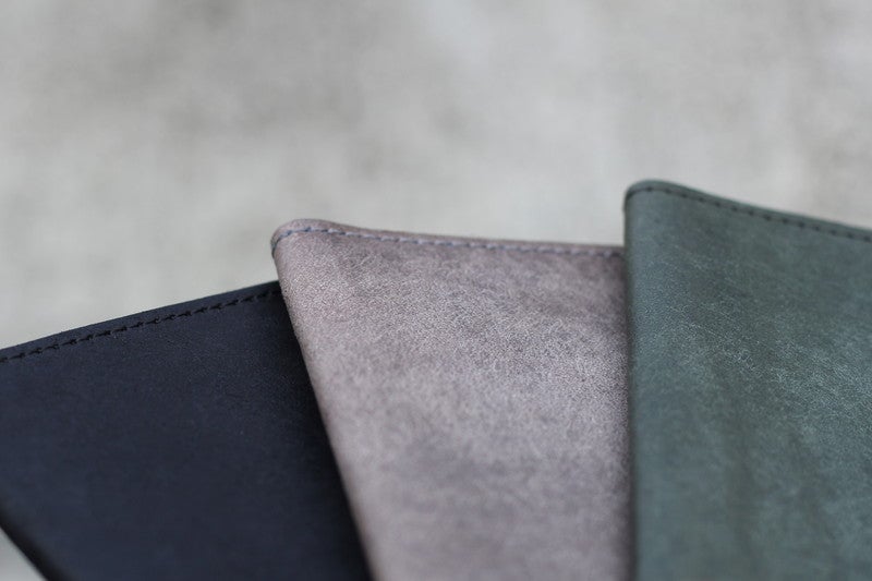 牛革+山羊革の組み合わせ ー Tenuisは外側に伝統バケッタ製法の高級イタリアンオイルレザー、内側に薄く強靭で伸縮性のある山羊革を使用しています。今作の牛革は和紙の様な質感と毛羽立ちのレザーですが使用につれ光沢や色の変化が楽しめます。