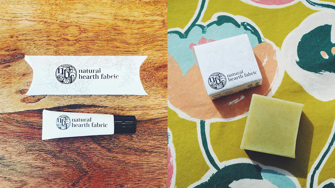 菊池市産の植物エキスをつかった化粧品プロジェクトをされているnatural hearth fabricさんのポイント保湿バーム(13g)と、コメヌカ入りコールドプロセスソープ(80g)のセットです。防腐剤や保存料、香料などを一切使わず、自然の材料だけで作られています。保湿力の高いバームと、さっぱりと洗い上げるソープのセットです。