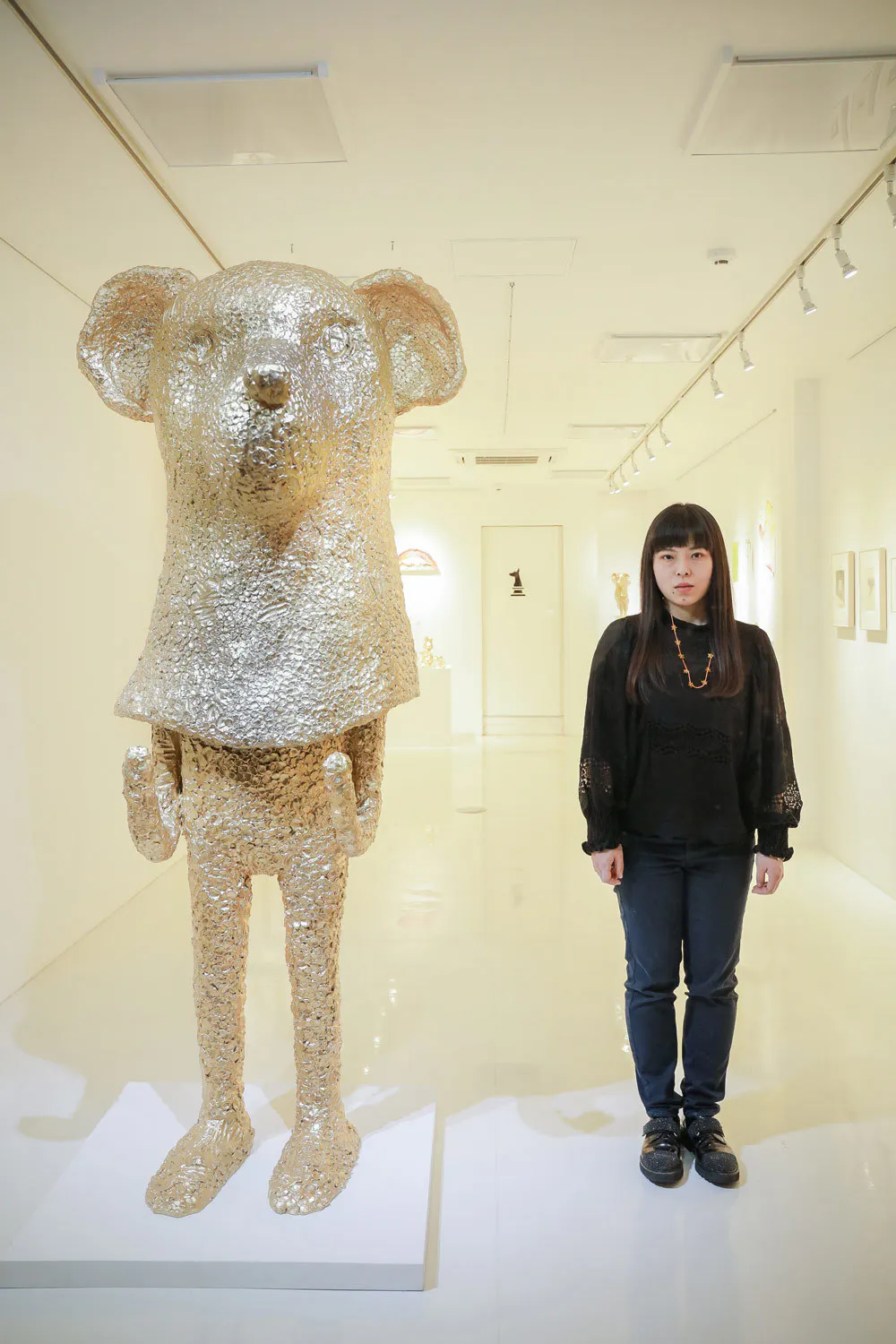 江頭菊池市長ご夫妻/菊池市在住のアーティスト スズキサアヤさんの作品の前で