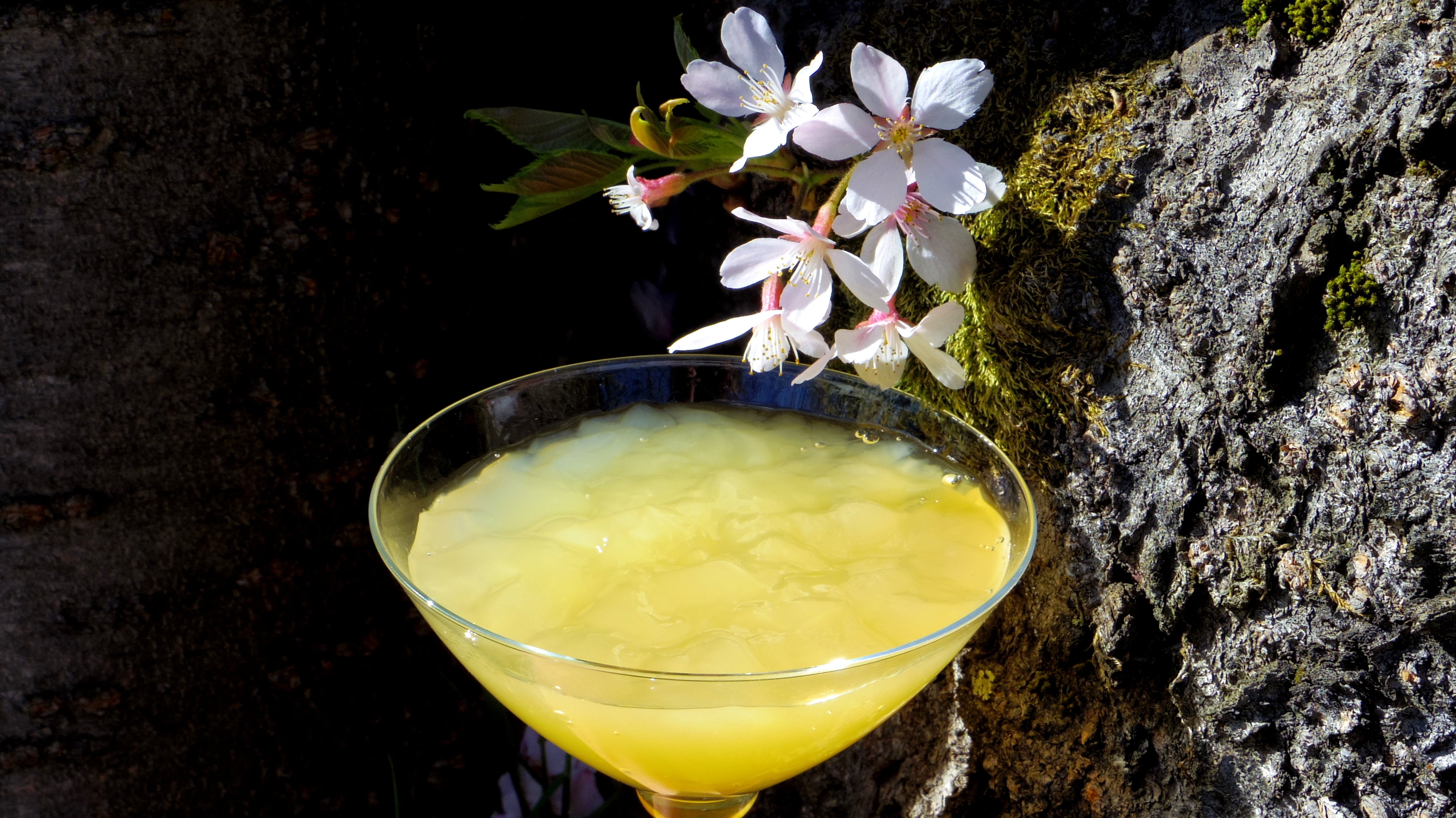 プロジェクトの成功を祈願して、桜の木とジュレで乾杯。