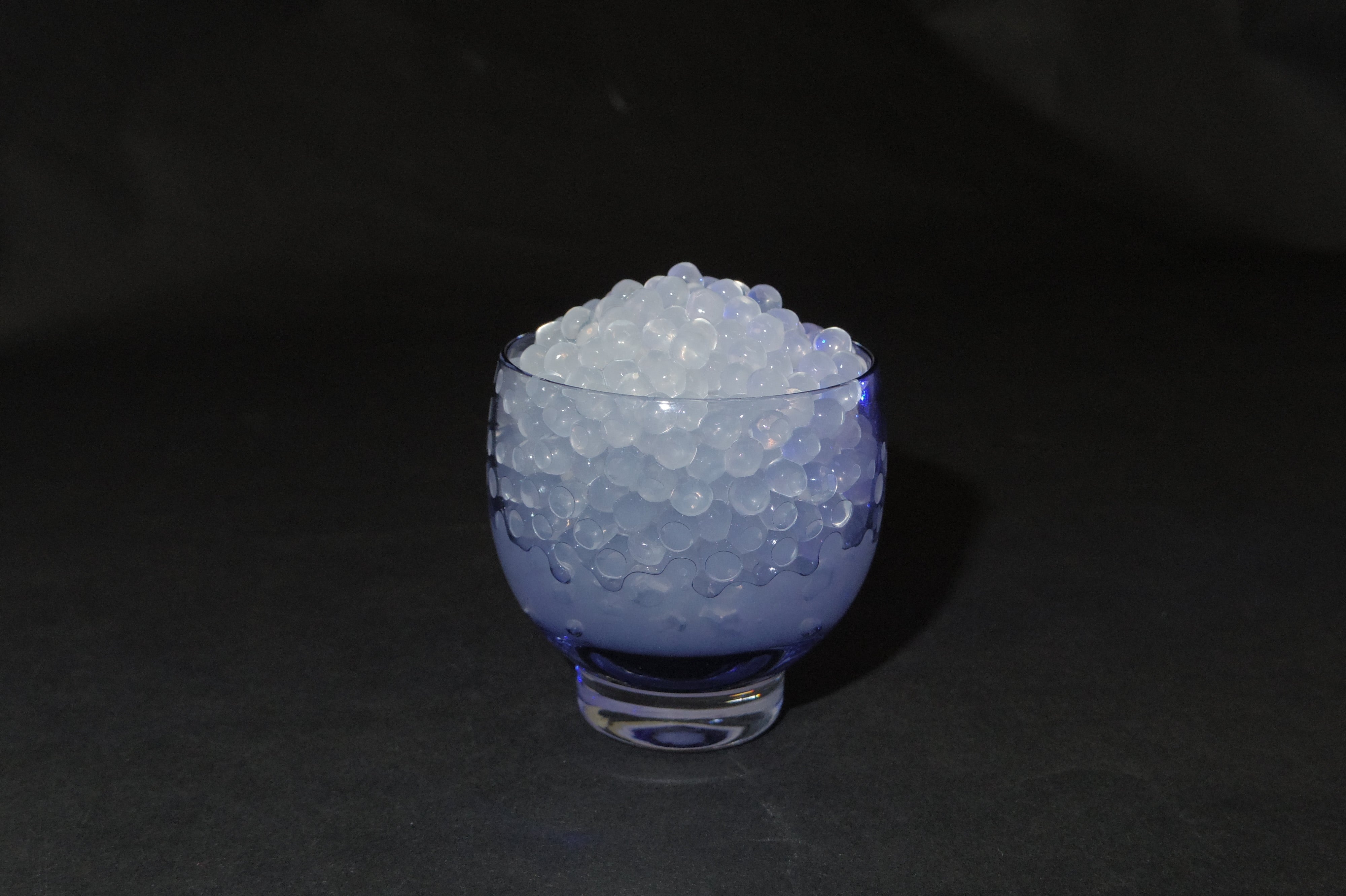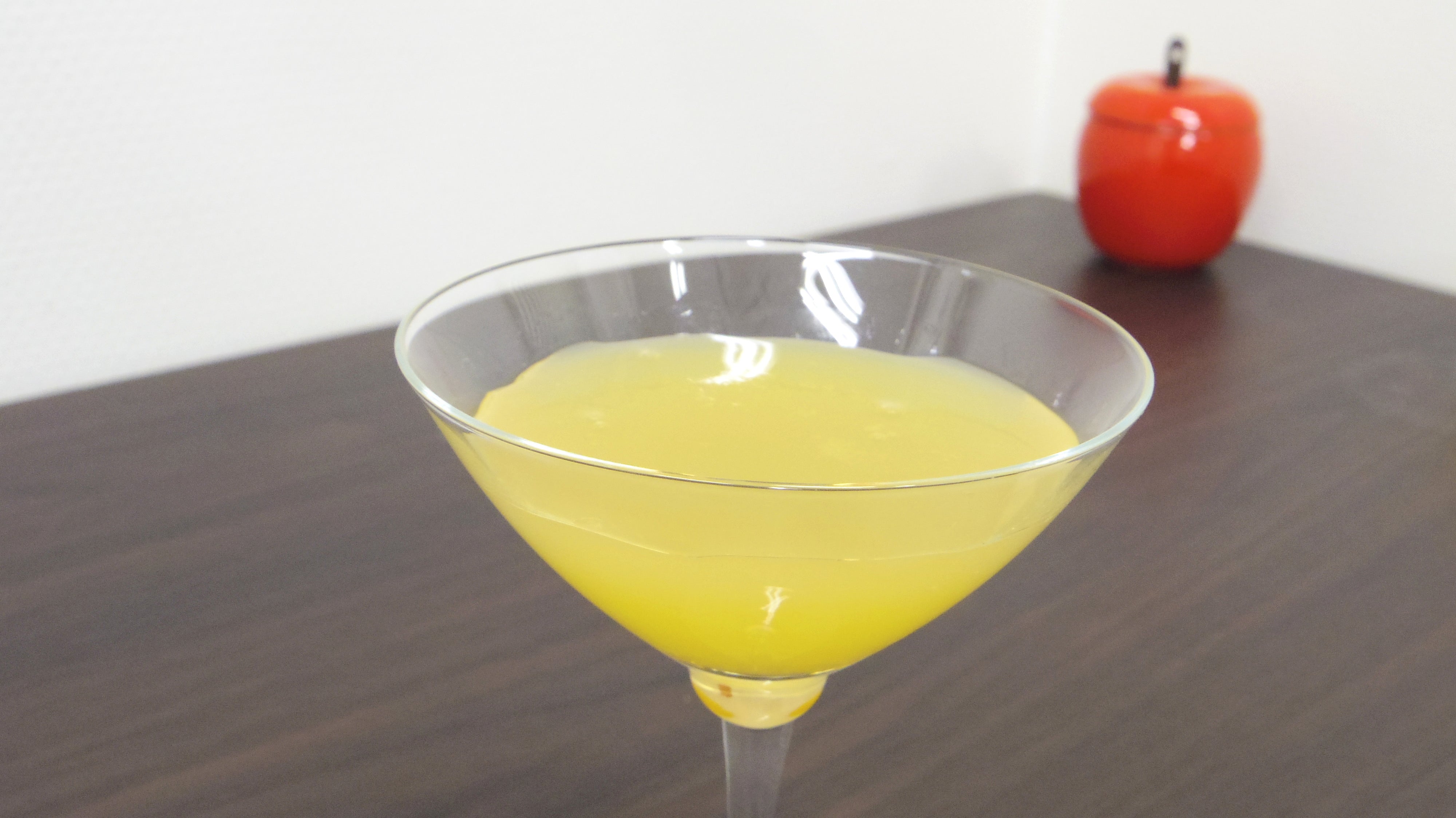 プロジェクト本文でご紹介させていただいております「クリスタルビーズ」。素材自体はやわらかな白っぽい半透明の粒ですが、たとえばしょうゆに漬けて一時間→二時間→三時間で、こんな風にだんだんとしょうゆ味に染まっていきます。もちろん、しょうゆにかぎりません。漬け汁次第でたとえばこんな風に、トロピカルな南国のジュースやカクテルに入れたくなるような見栄えにもできます。以前の活動報告で、私たちの人工キャビアはイカ墨色が他の食材に色移りしないのが特長であると述べさせていただいておりますが、このクリスタルビーズはどちらかといえばその逆ですね。漬ける液体の色や味を吸うことに価値があります。ひとつの技術を、一方向ではなく多方面に応用できないか常に考えて試行錯誤しています。完熟りんごジュレもそのひとつです。