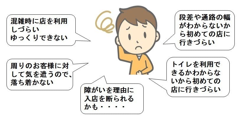 ●例えば、車椅子の方は外食することに対してこんな悩みがありませんか?
