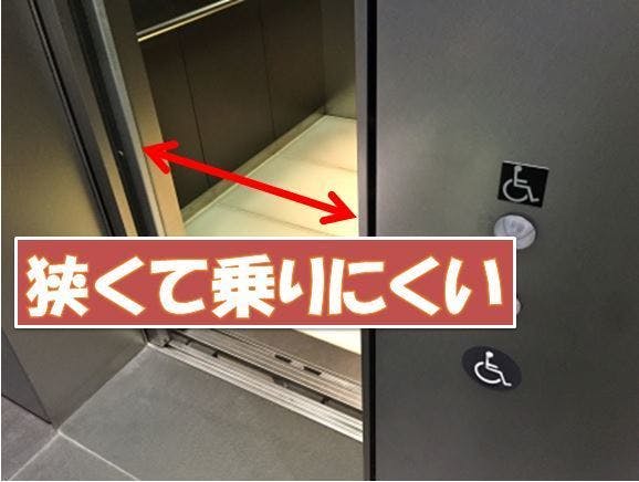 エレベーターが狭くて乗れない、エレベーターには乗れても降りる際にエレベーター前に障害物が置いてあって降りることができない、