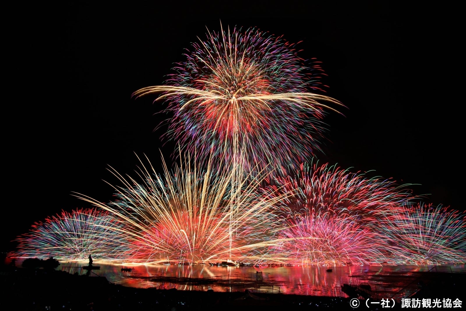 毎年行われる夏の諏訪湖祭湖上花火大会は、約4万発もの花火を観るために全国各地から約50万人の観光客が訪れる一大イベントとなっています。
