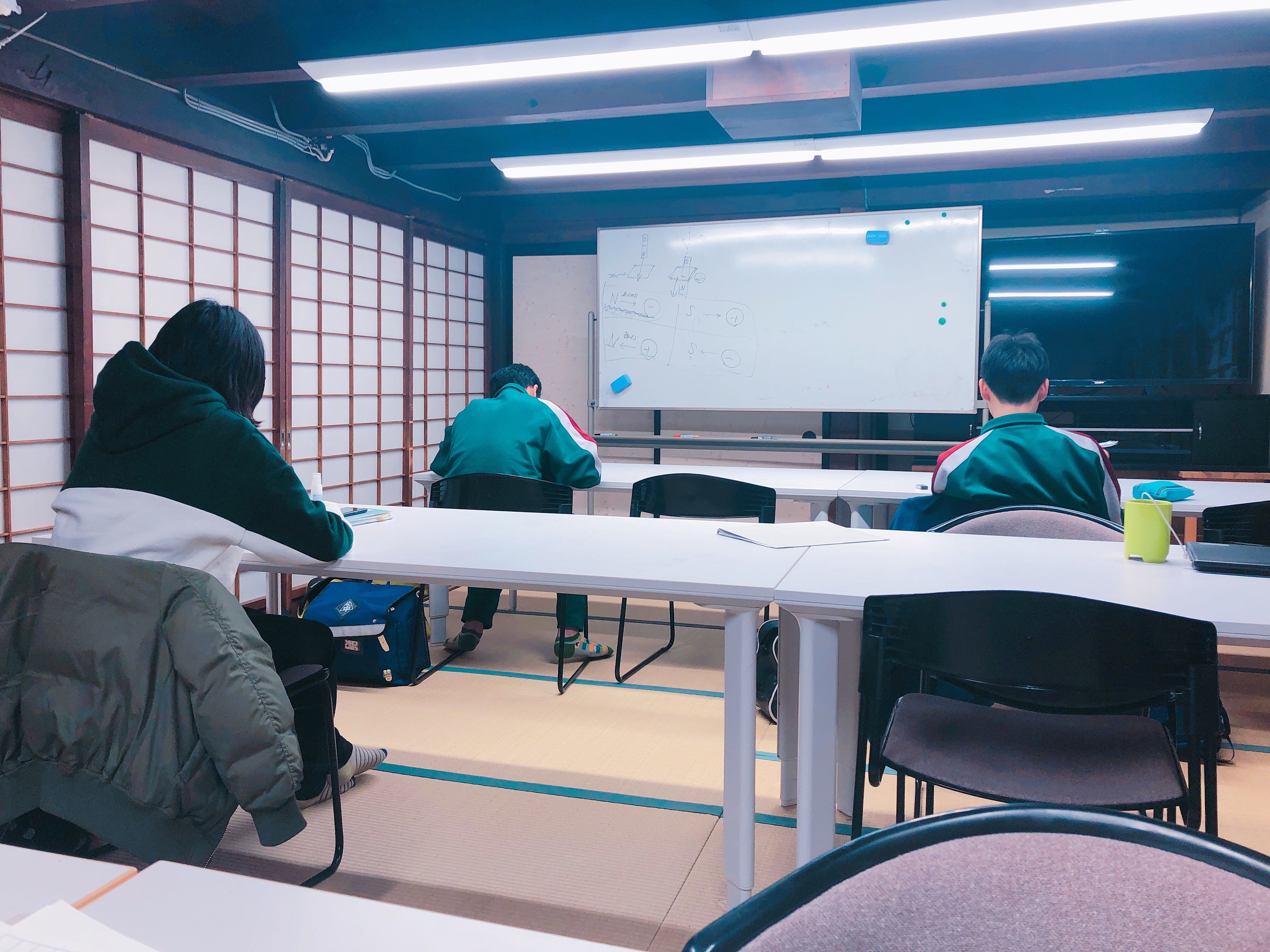 通常の塾とは違い、利用は無料で、カリキュラムに沿った授業のようなものはなく、個々の進捗に合わせた個人学習・指導が主体となっています。自習する中で出てくる疑問点等を一緒になって解決に向かって学習していく流れが基本です。おうたき寺子屋の利用者は2〜10名/日であることと、小学生から高校生までが同じ教室で学ぶ環境のため、授業形式では生徒ごとの理解に差が出すぎてしまい、非効率であることからこのようなやり方を取っています。