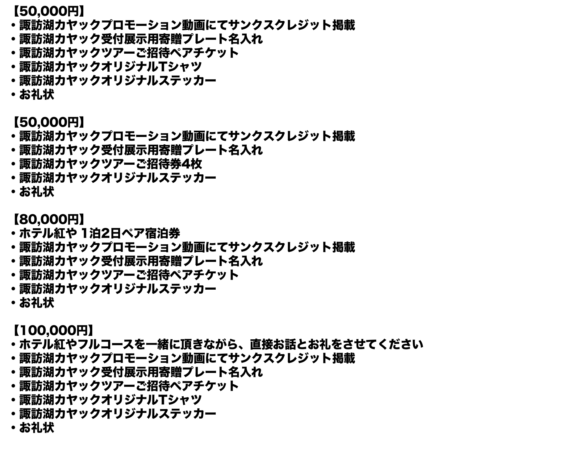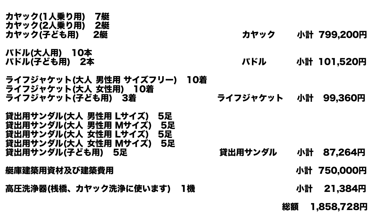 ご支援頂いたお金は諏訪湖カヤックの発展に向け、上記の【資金の使い道】の内容に沿って誠実・確実に使わせて頂きます。