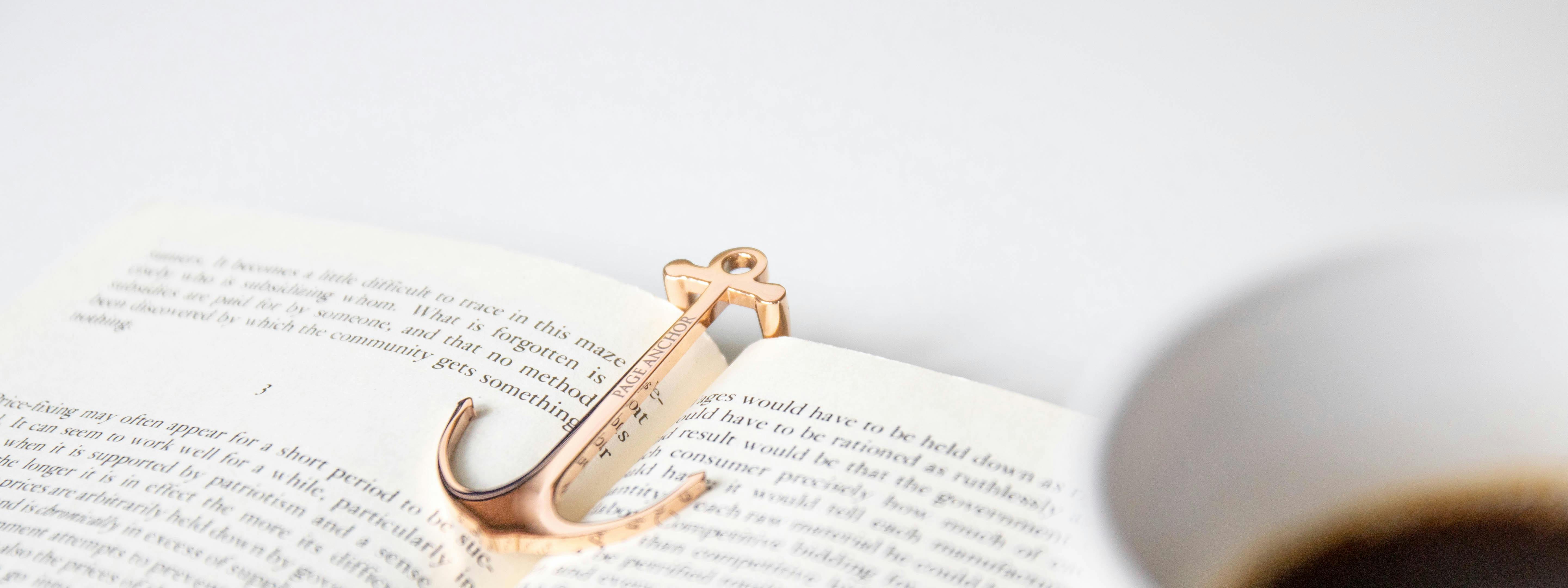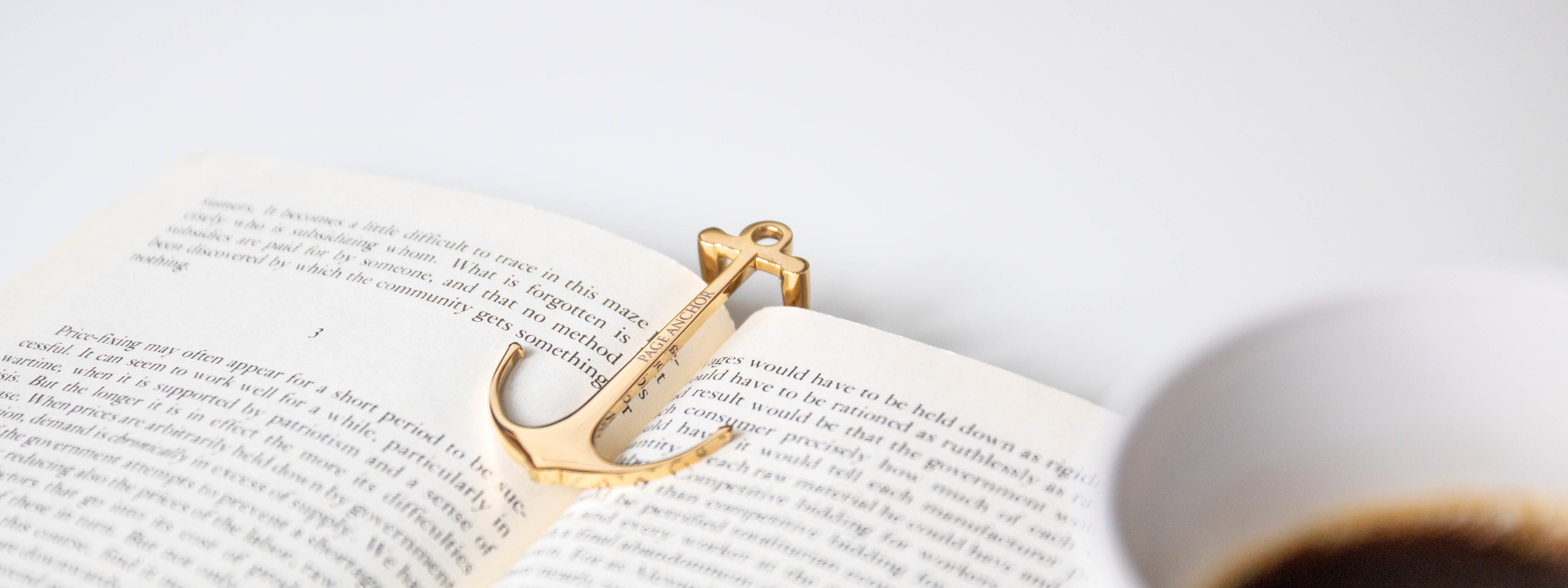 スウェーデン生まれの「Page Anchor」(ページアンカー)は、船のイカリをモチーフにしたブックマークピンです。スライドさせて本にセットすると、読書中の本のページを開いたままキープできるので、手でページを押さえている必要が無く、両手を自由に使えます。