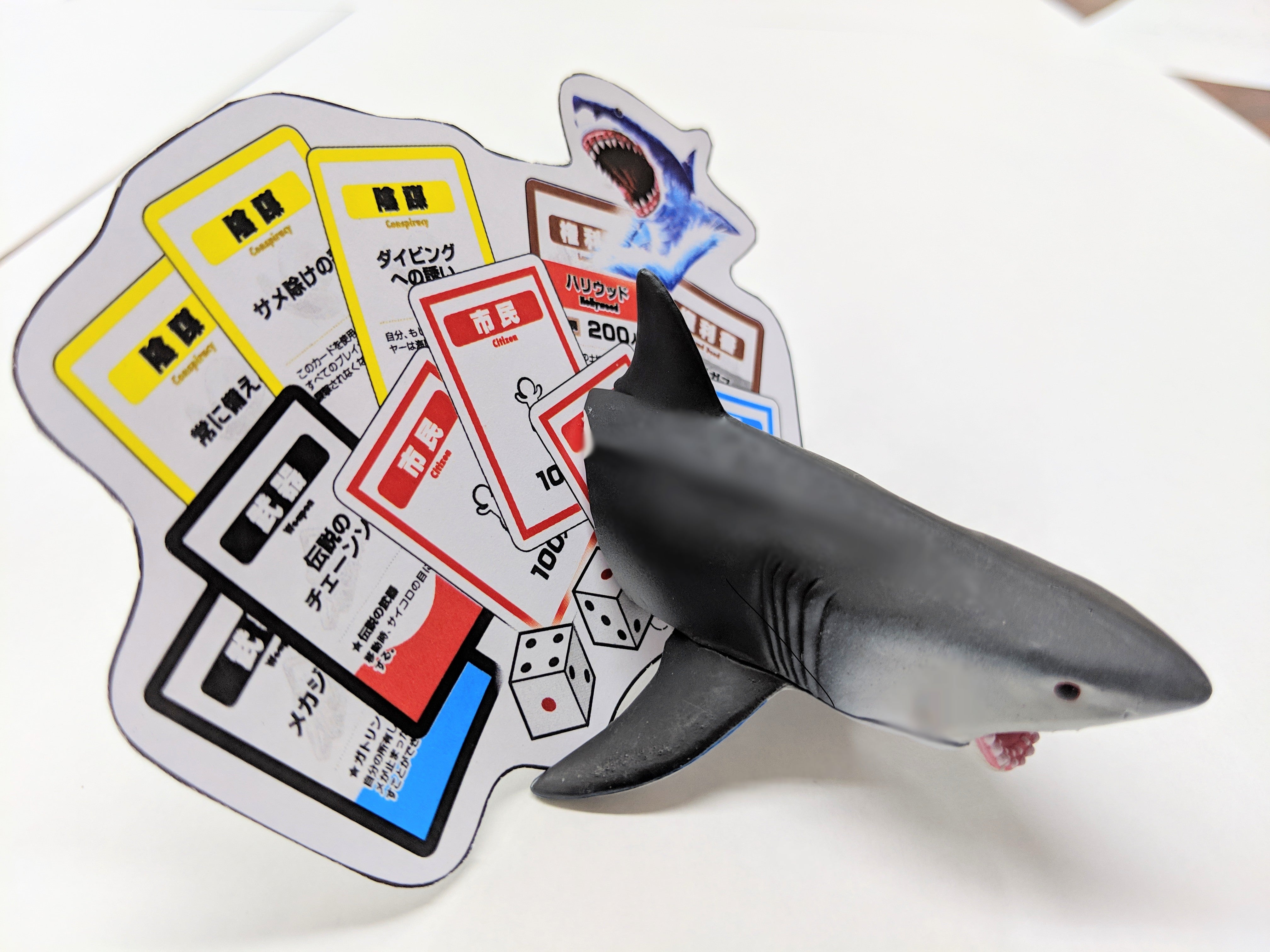 このサメフィギュアはコンポーネント(ゲームのプレイツール)にはつきませんが、ゲーム中にプレイヤーを襲ってくるトーテムの制作参考に作られたものです。