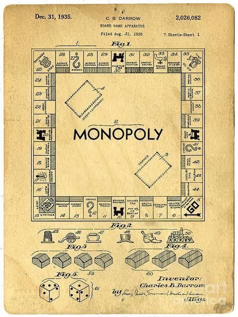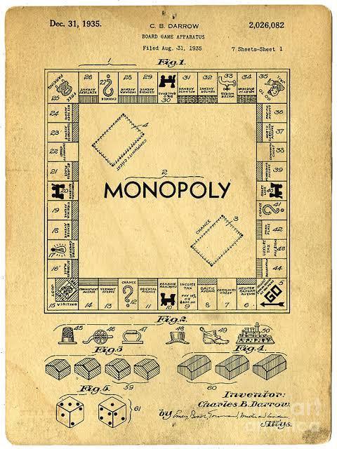 この特許取得は1935年、同時にモノポリーの複製権と販売権がハーパー・ブラザース社に許諾され、その特許権は1952年まで存在しました。
