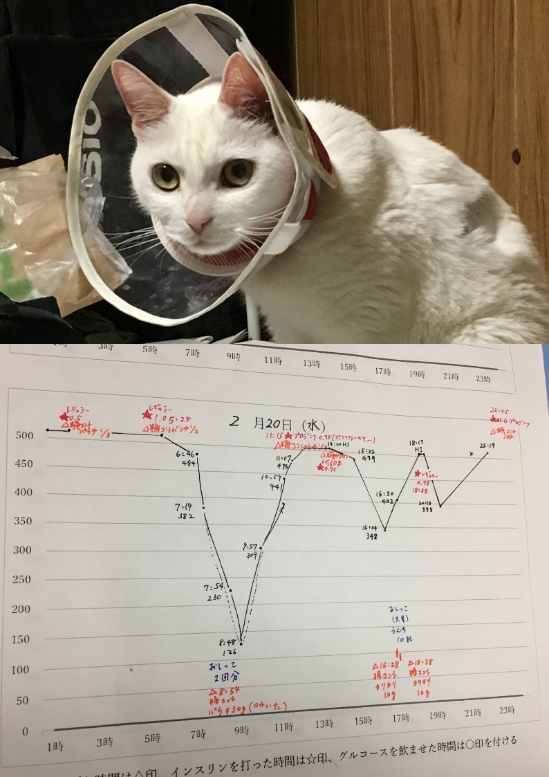 ただ、猫用のインスリンプロジンクではなかなか下りが悪く、長時間効果のはずなのにあまりうまく作用してくれないので、HIの状態が長く続いてしまうので、結局は人用のレギュラーインスリンを打たないといけなくなってます…