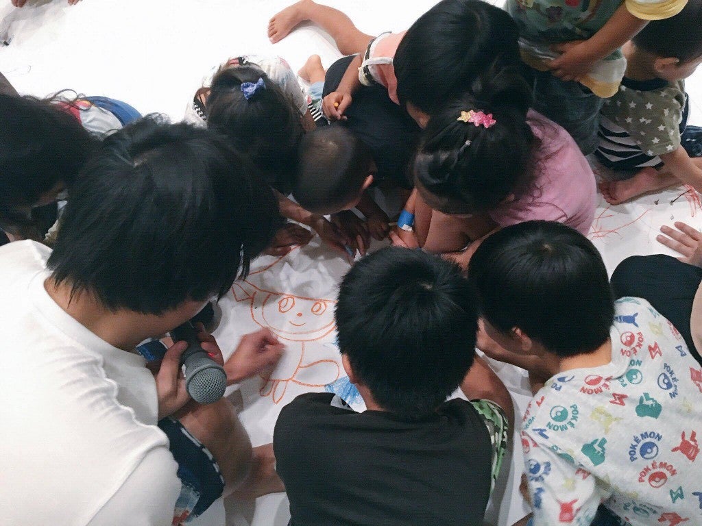 小さな子達も参加しながら、のぶみさんの世界観を体感することで普段味わえない体験をこのワークショップを通して楽しんでほしい