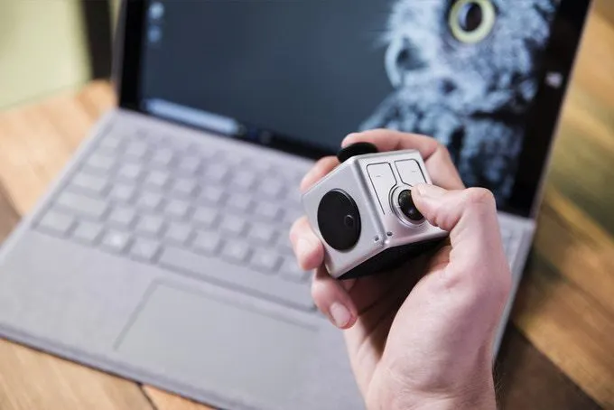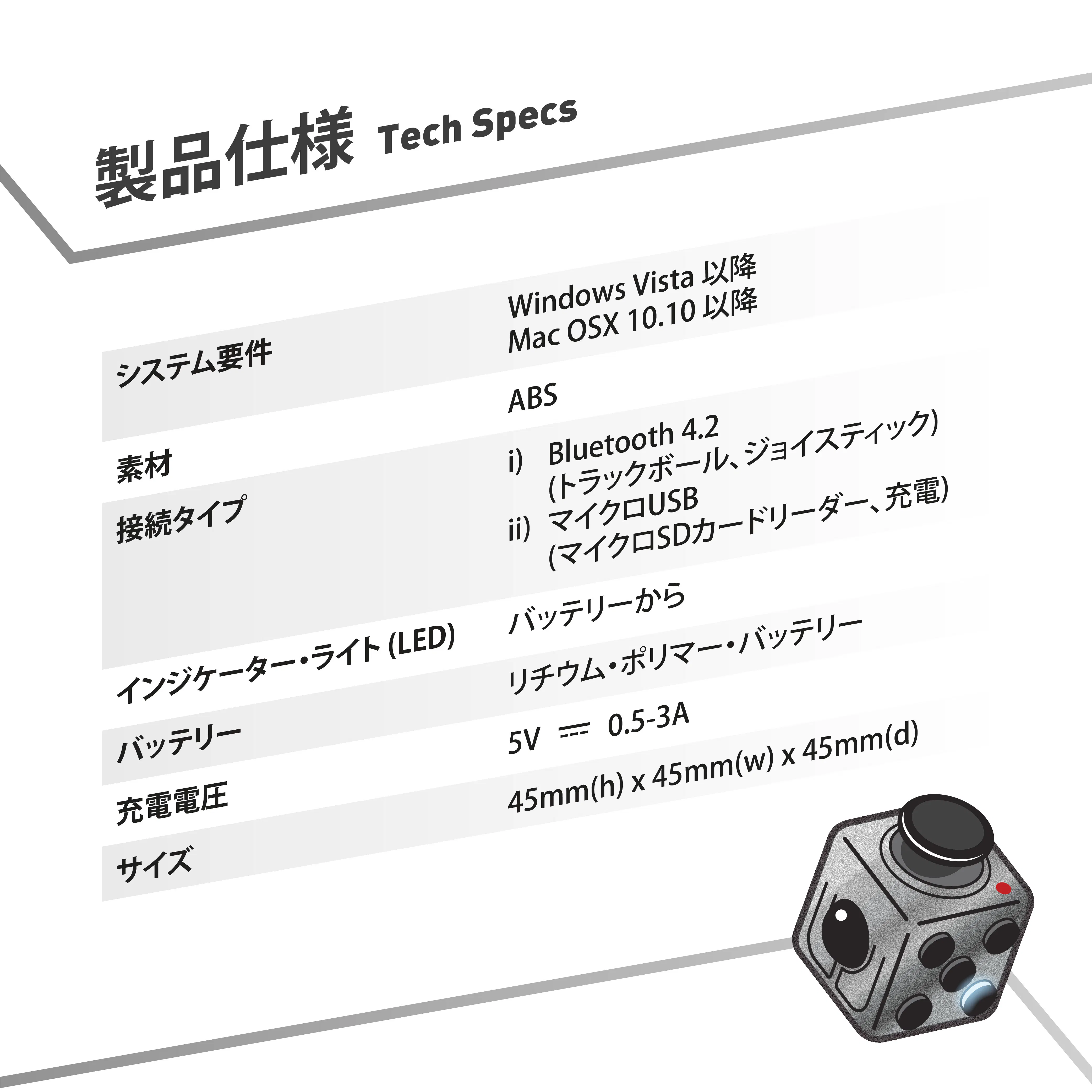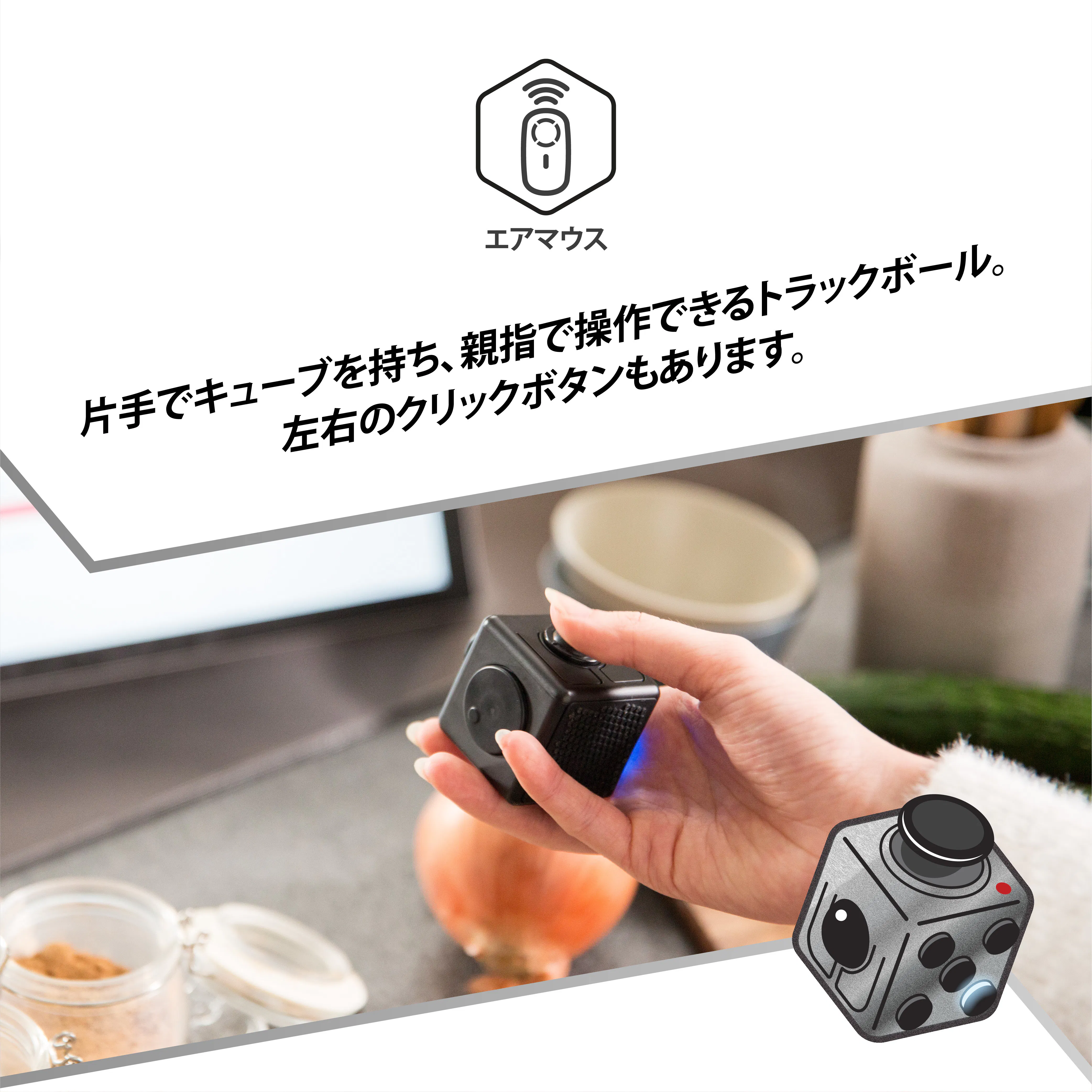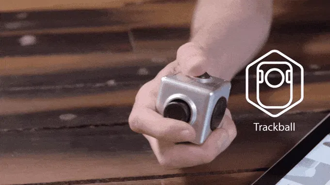 片手でキューブを持ち、親指で操作できるトラックボール。左右のクリックボタンもあります。