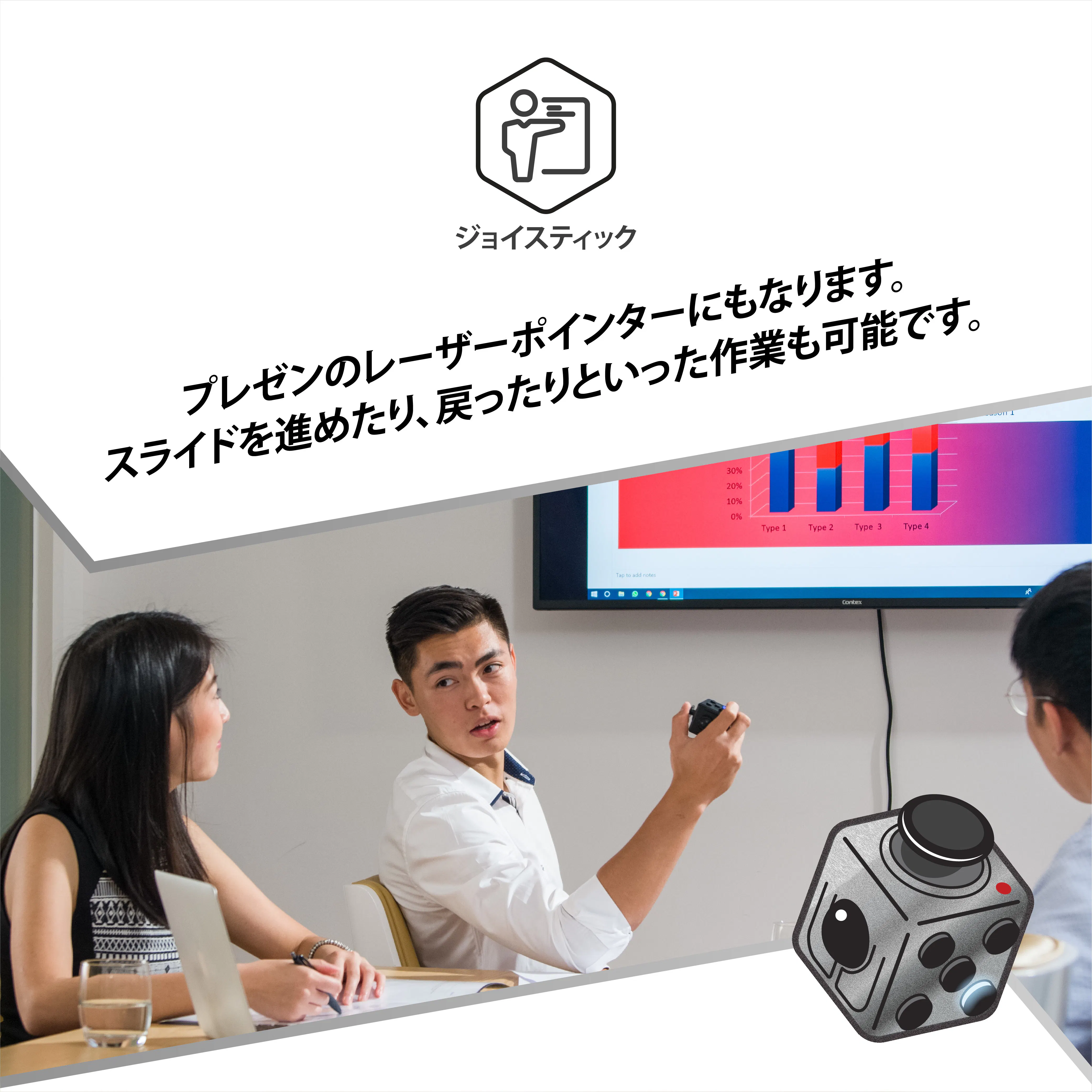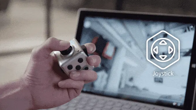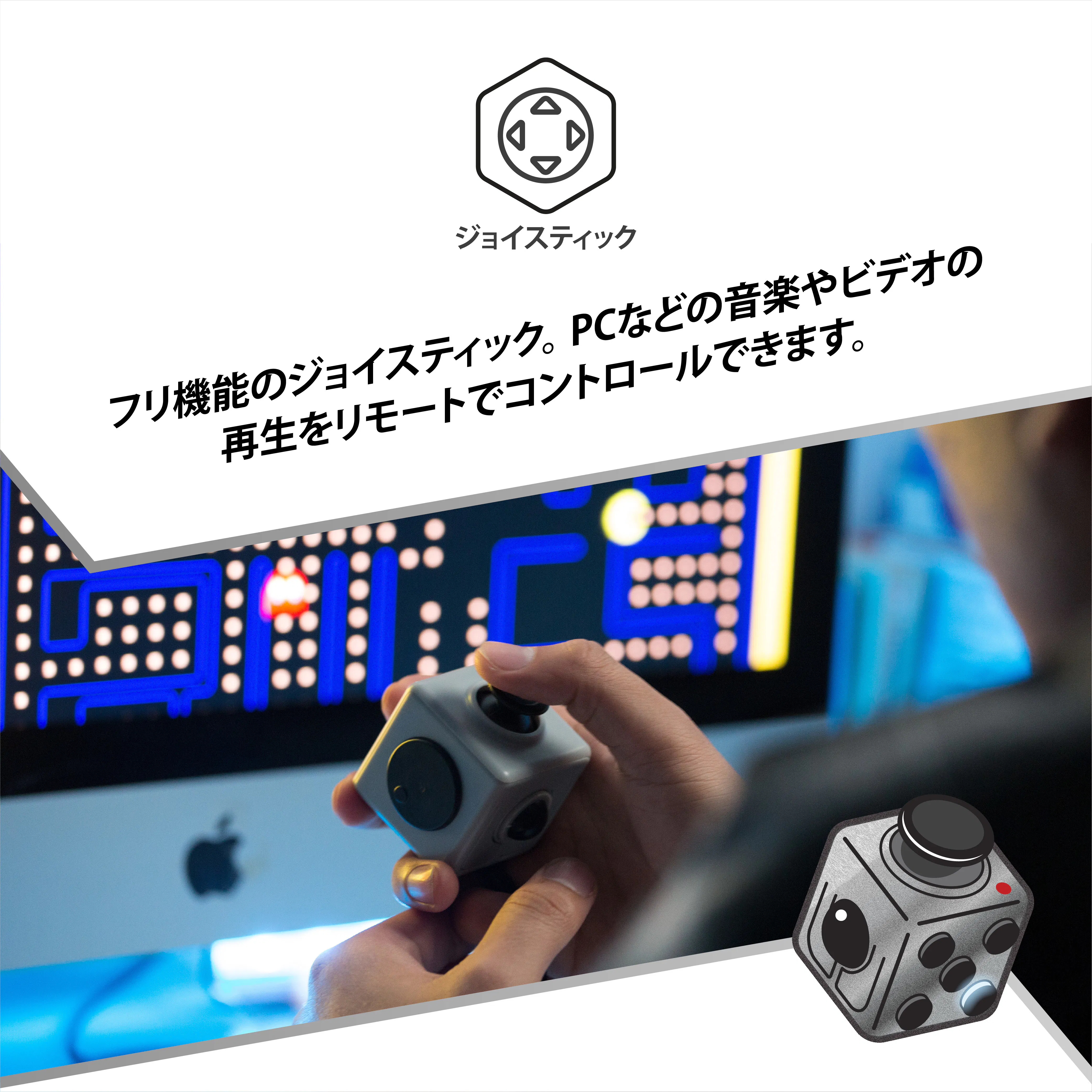 フリ機能のジョイスティック。PCなどの音楽やビデオの再生をリモートでコントロールできます。