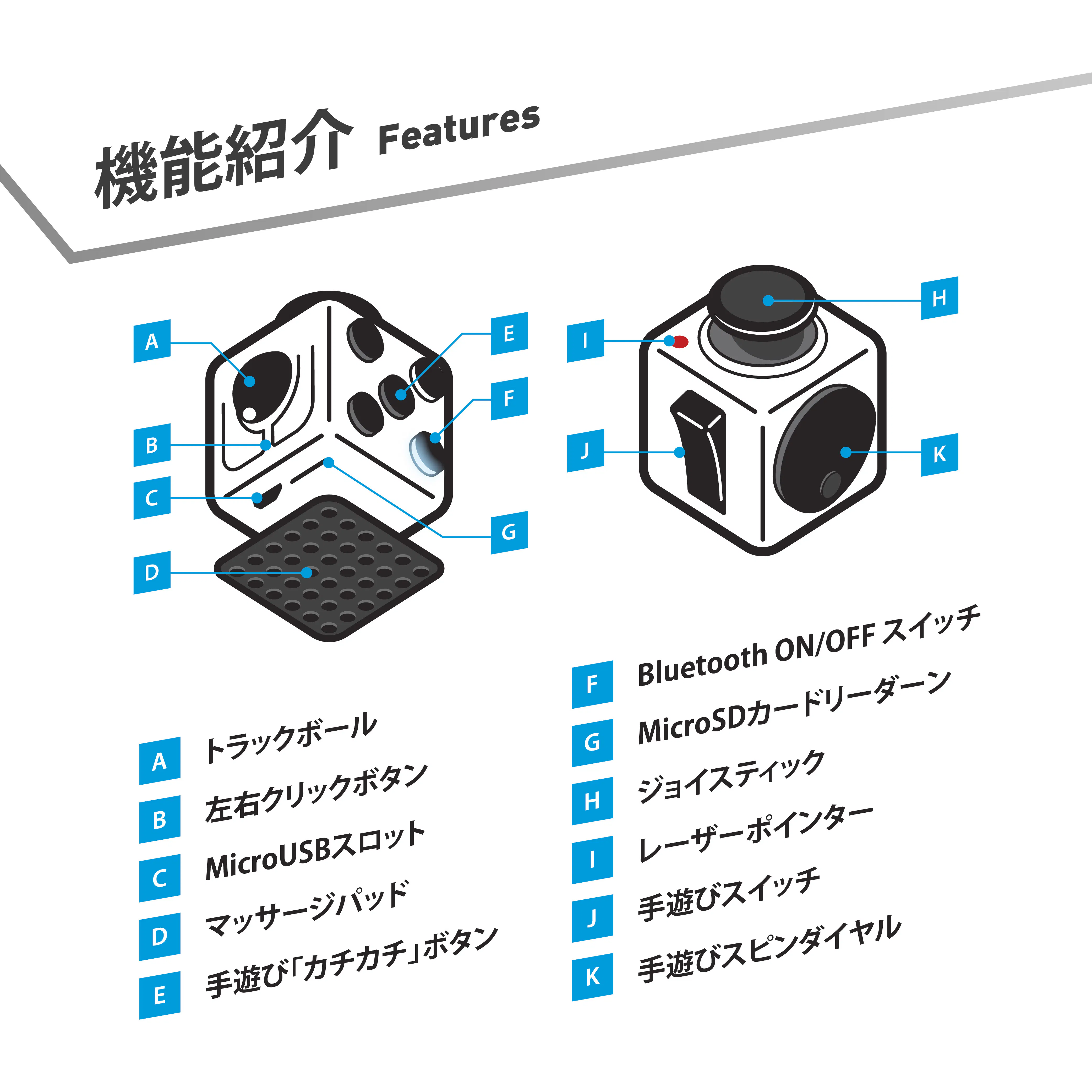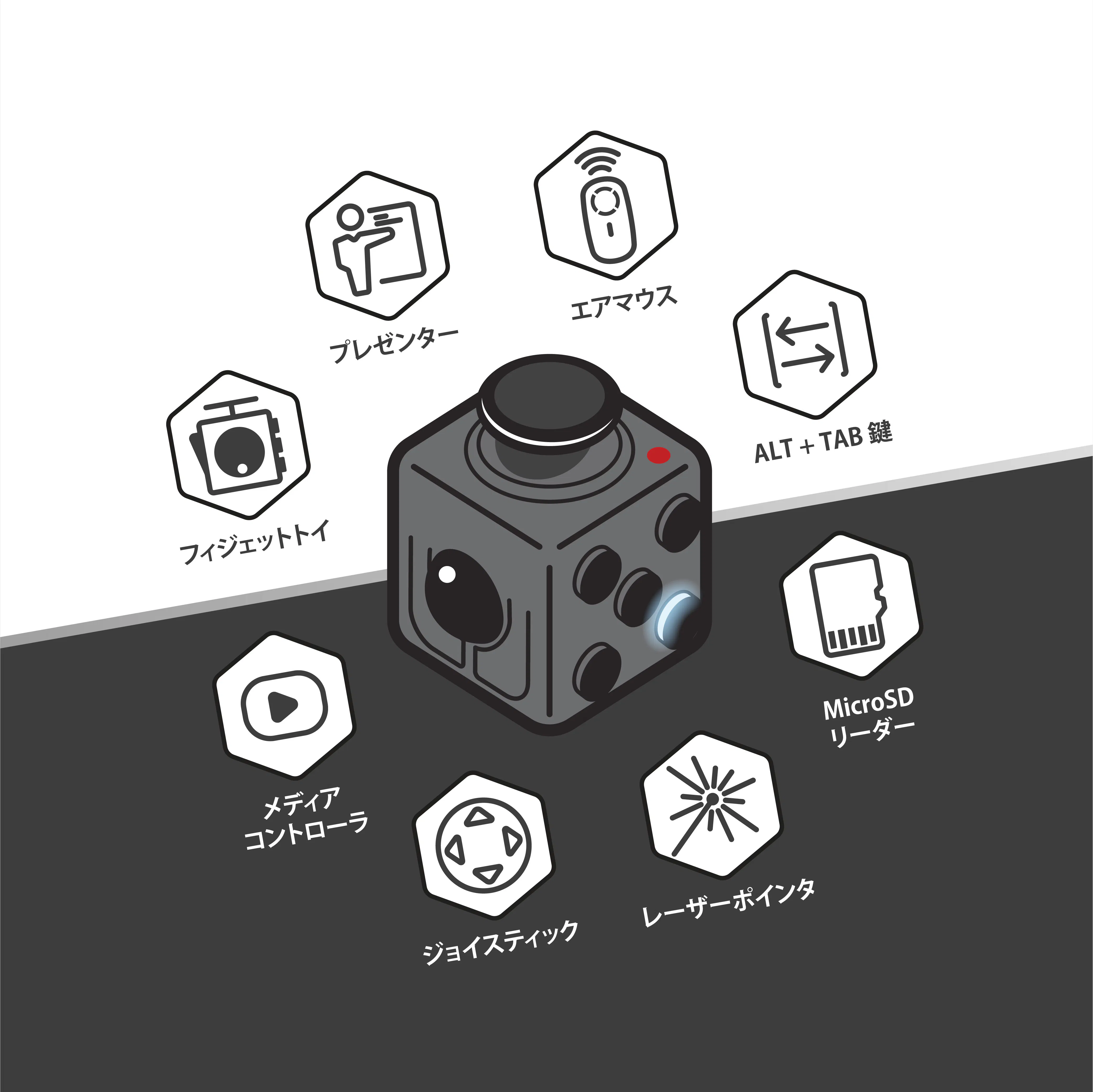 世界のフィジェッター注目!フィジェットの概念を根本から変えてしまうフィジェットガジェット「Masta Box(マスタボックス)」を紹介します。Masta Boxは、エアマウスにも、ジョイスティックにも、レーザーポインタ付きプレゼンターにも、MicroSDカードリーダーにもなるコンパクトなキューブ型フィジェットです。
