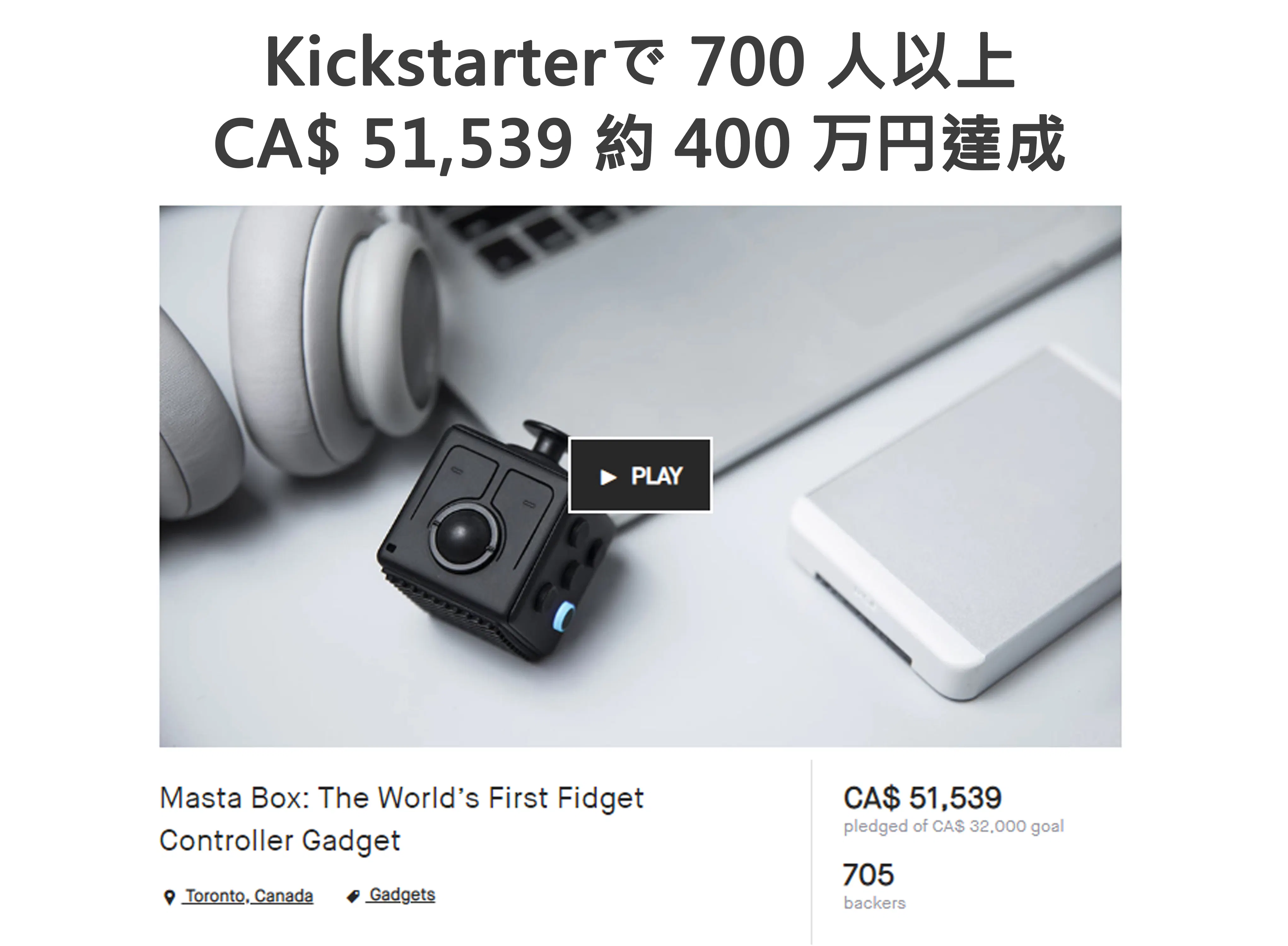 Mastaboxは、世界初の「使えるフィジェット」として2018年6月にKickstarterでローンチしました。ローンチ直後に多数のメディアに紹介されるなど注目を集め、最終的にはKickstarterで700人以上、400万円以上を集めた人気のプロダクトです。