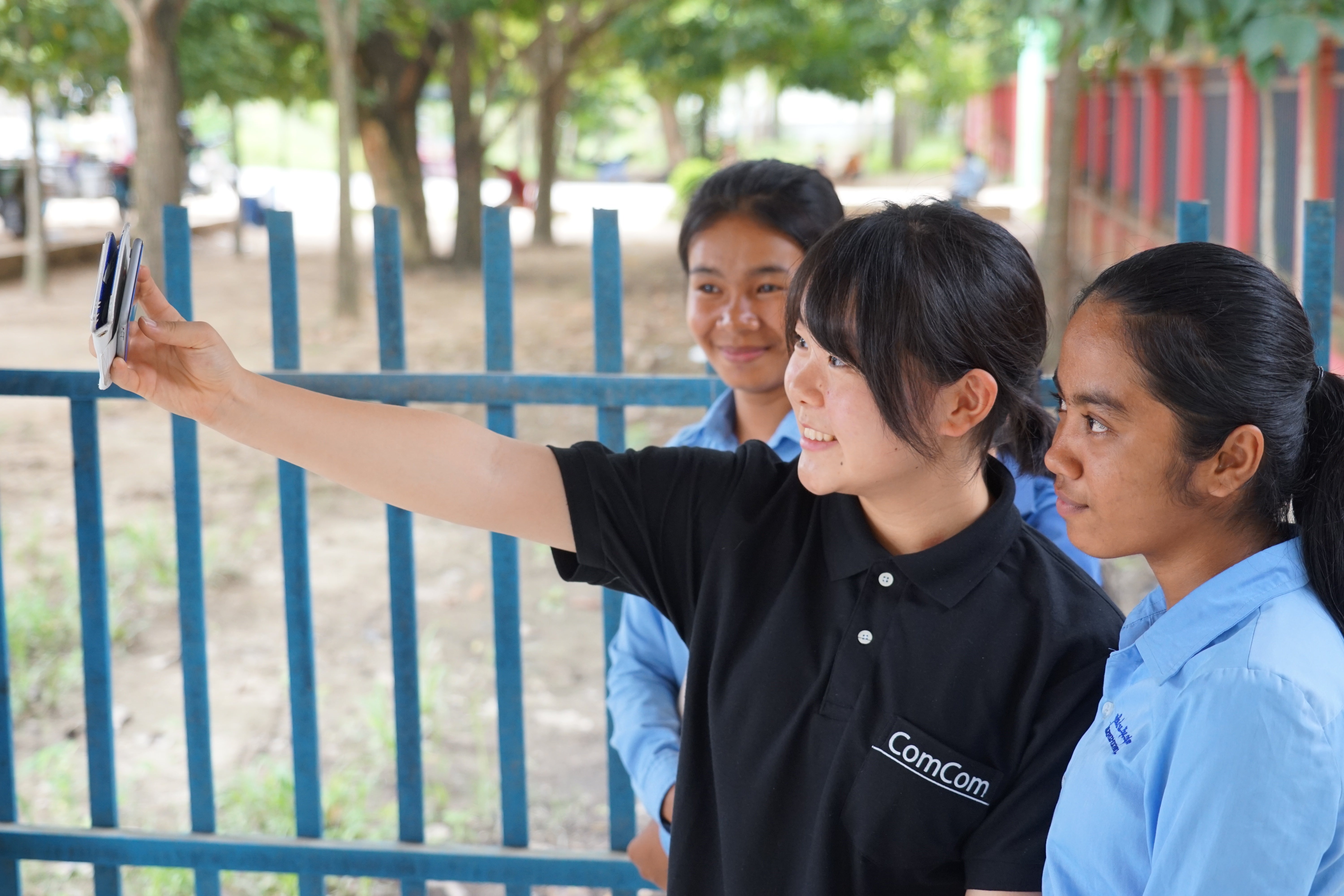 苦手な英語や覚えたてのクメール語を使ったり、ボディランゲージで工夫したり...言葉の壁を越えた高校生同士のフレッシュな交流がありました!