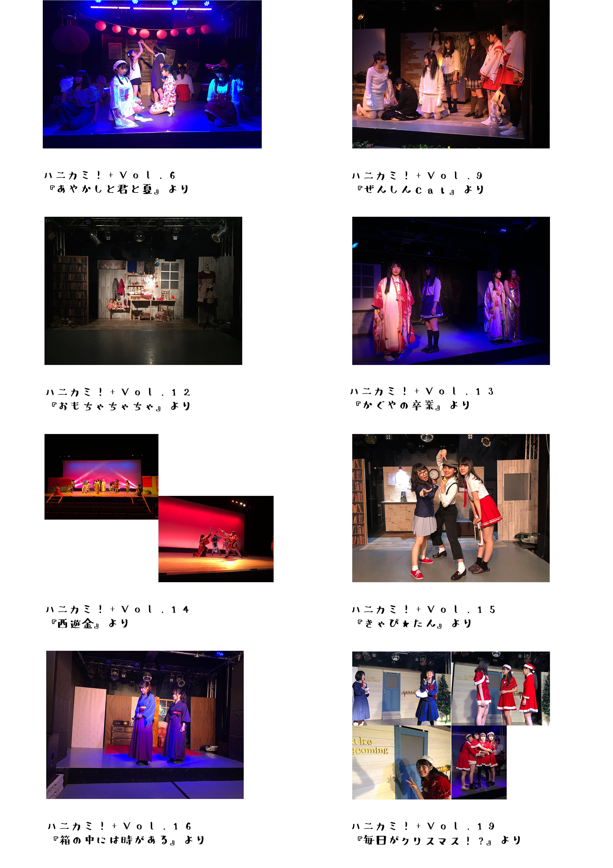 “女の子だけの喜劇カンパニー”ガールズコメディ『ハニカミ!』結成当初は、YESTHEATERにて3ヶ月に1度のペースで公演を実施、2017年に日本橋ポルックスシアターを拠点に定期公演がスタートし2019年3月には定期公演も22公演目となりました。定期公演と並行して、石川県のTheMAT’Sや四條畷市民ホール、道頓堀ZAZAHouse・道頓堀ZAZABoxにて公演を実施。道頓堀ZAZABoxではよしもとクリエイティブ・エージェンシー主催、協力オーサカ・オモロ委員会にて2018年8月からの2ヶ月間に渡り『ハニカミ!』公演を実施、およそ3,000名の方に足を運んで頂きました。