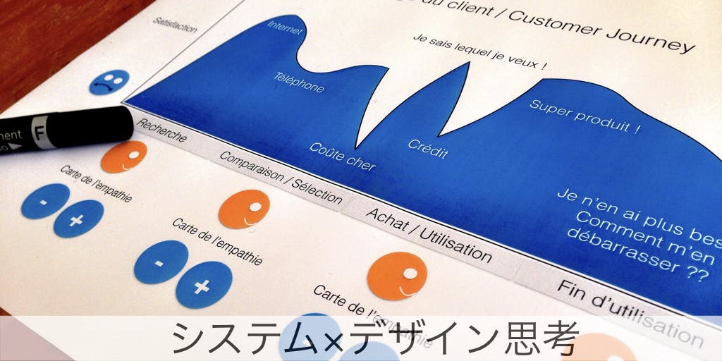 システム思考、デザイン思考ともに、普段気づかない、「思考の枠」を超えて新しいアイデアを見つけるための思考法といえますが、デザイン思考では、ブレインストーミングなど複数の人とのディスカッションを通すのに対し、システム思考では、ループを描き、つながりや因果関係に着目することから、木を見て森も見る、全体思考に脳の状態を持っていくことで、新たに気づきを得る思考法になります。