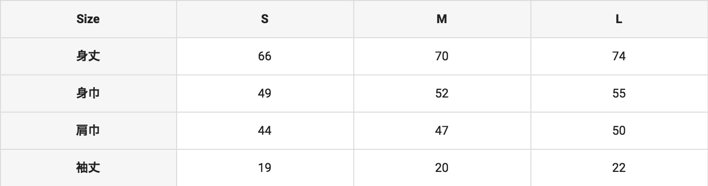 【A】サイズは、以下のS・M・Lのいずれかです。また、色は白のみとなります。