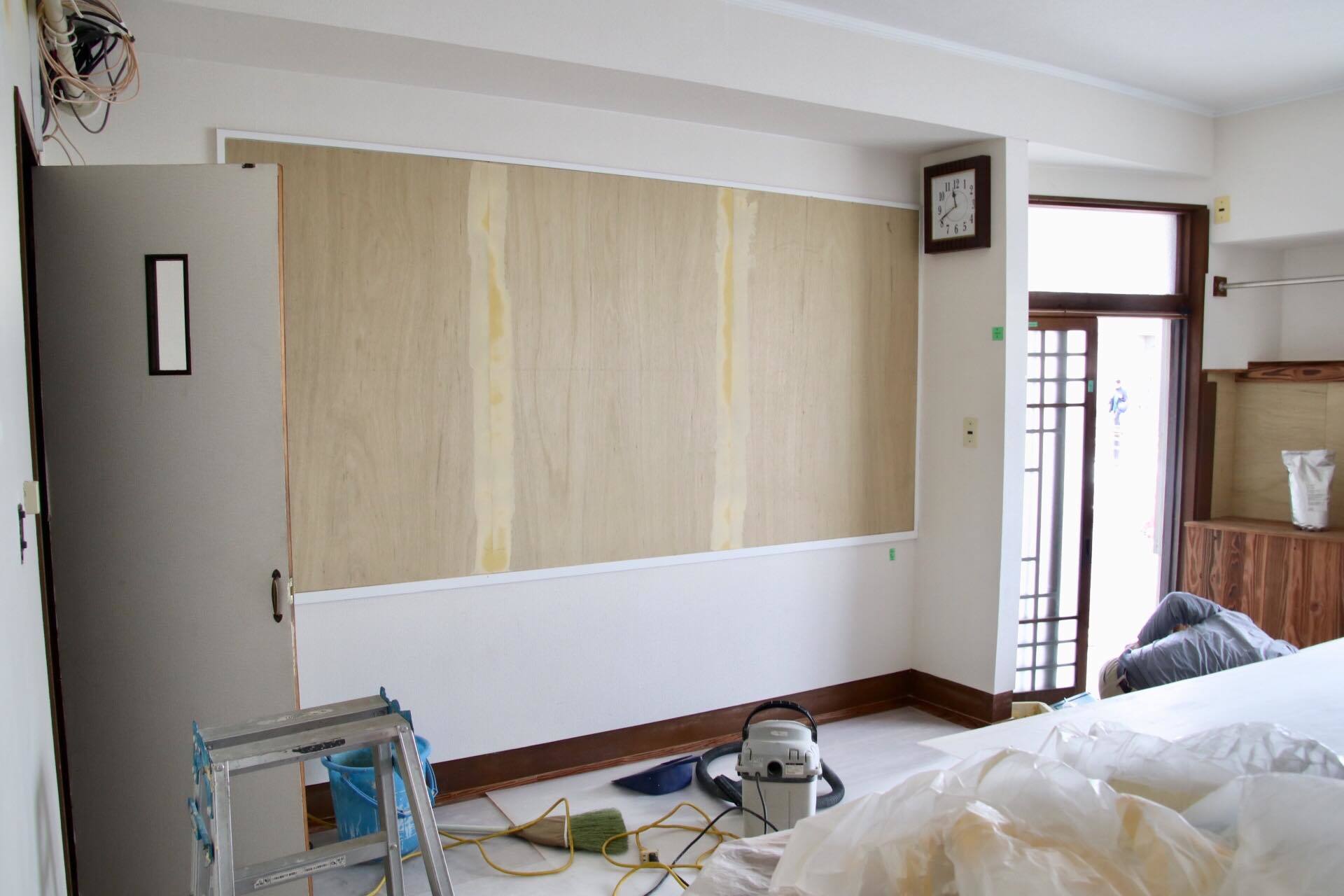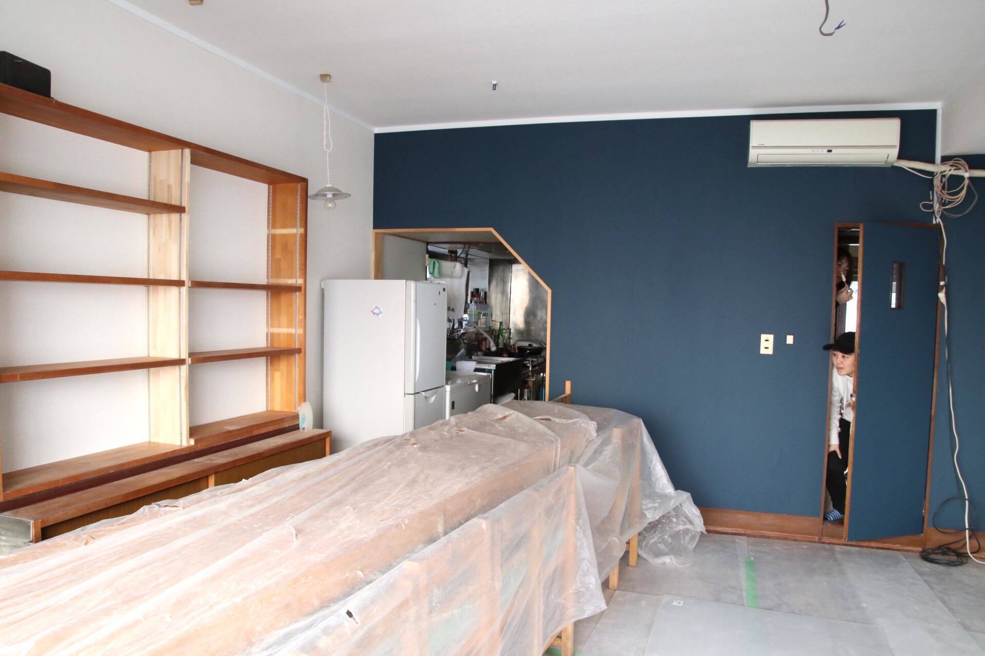 駐車場と繋がっていた窓は塞いで、ここに「海の情報」を貼ったり、たまにプロジェクターで映像を投影して小さなイベントを行おうと企んでいます。