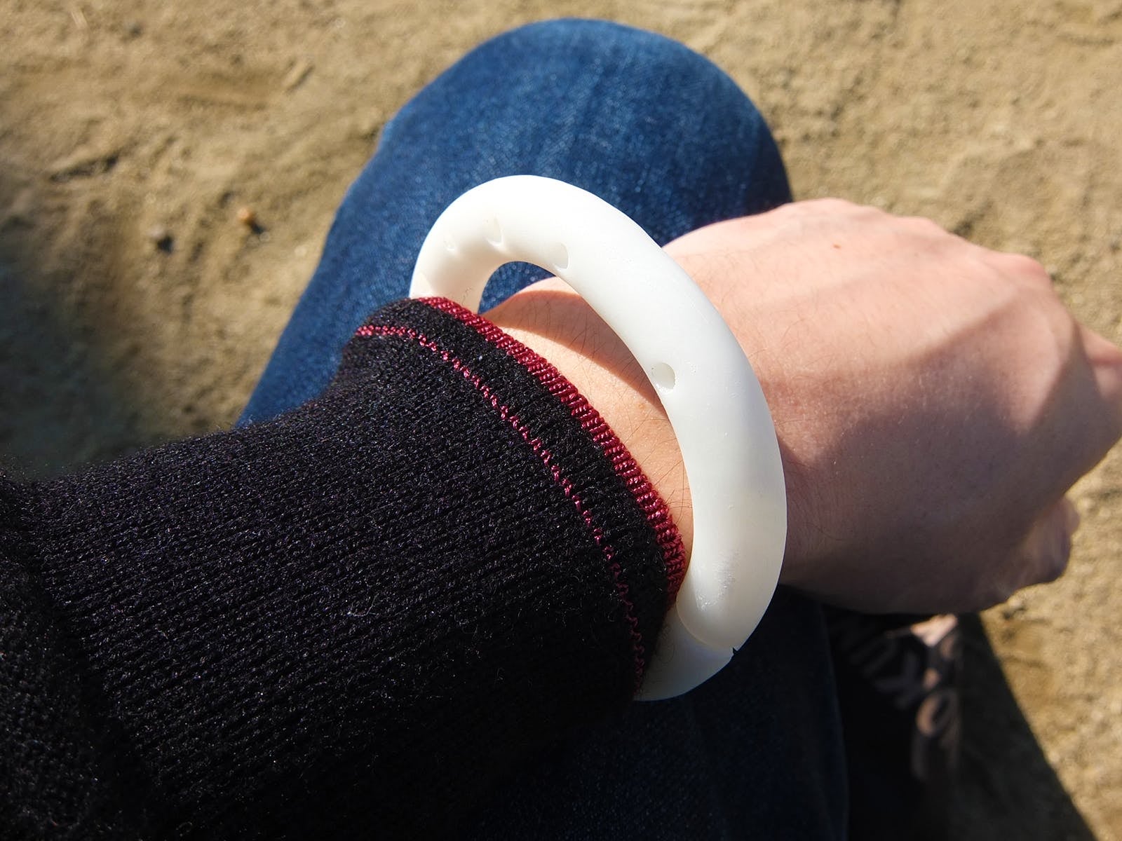 ――腕にはめてみると違和感なくお洒落。まさか誰もこれがリコーダーだとは気づかないでしょうね。