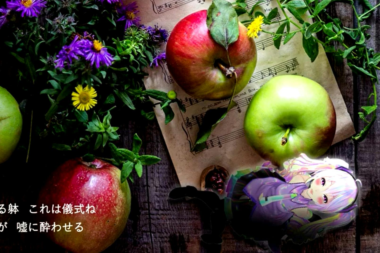 タイトルは「林檎の追憶、偽りの彫像」です。