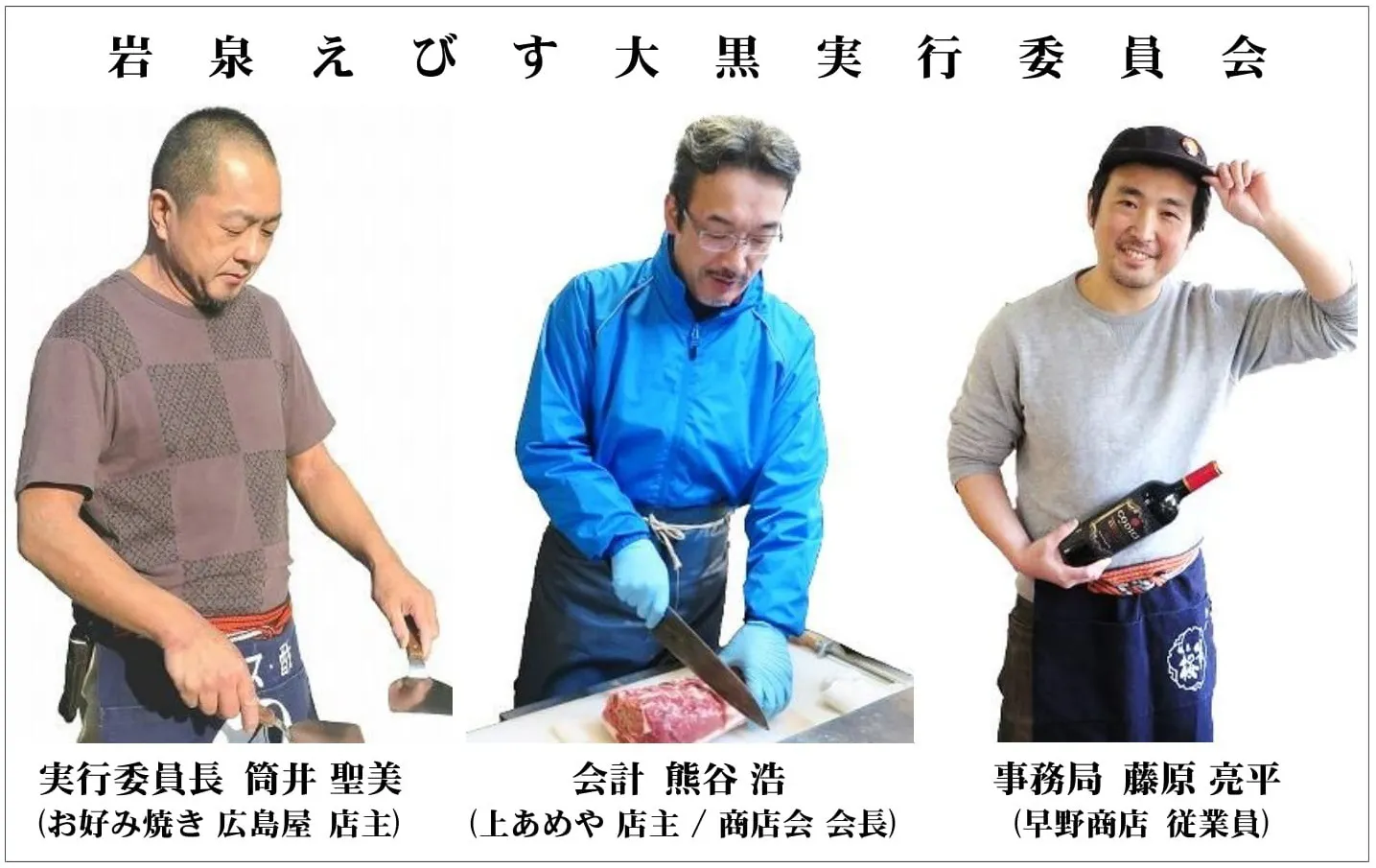 【岩泉えびす大黒実行委員会】は、岩泉うれいら商店街にある お好み焼き屋店主の私が、落語会などを開くために同じ商店街の飲み仲間二人を巻き込んで始まった会です。