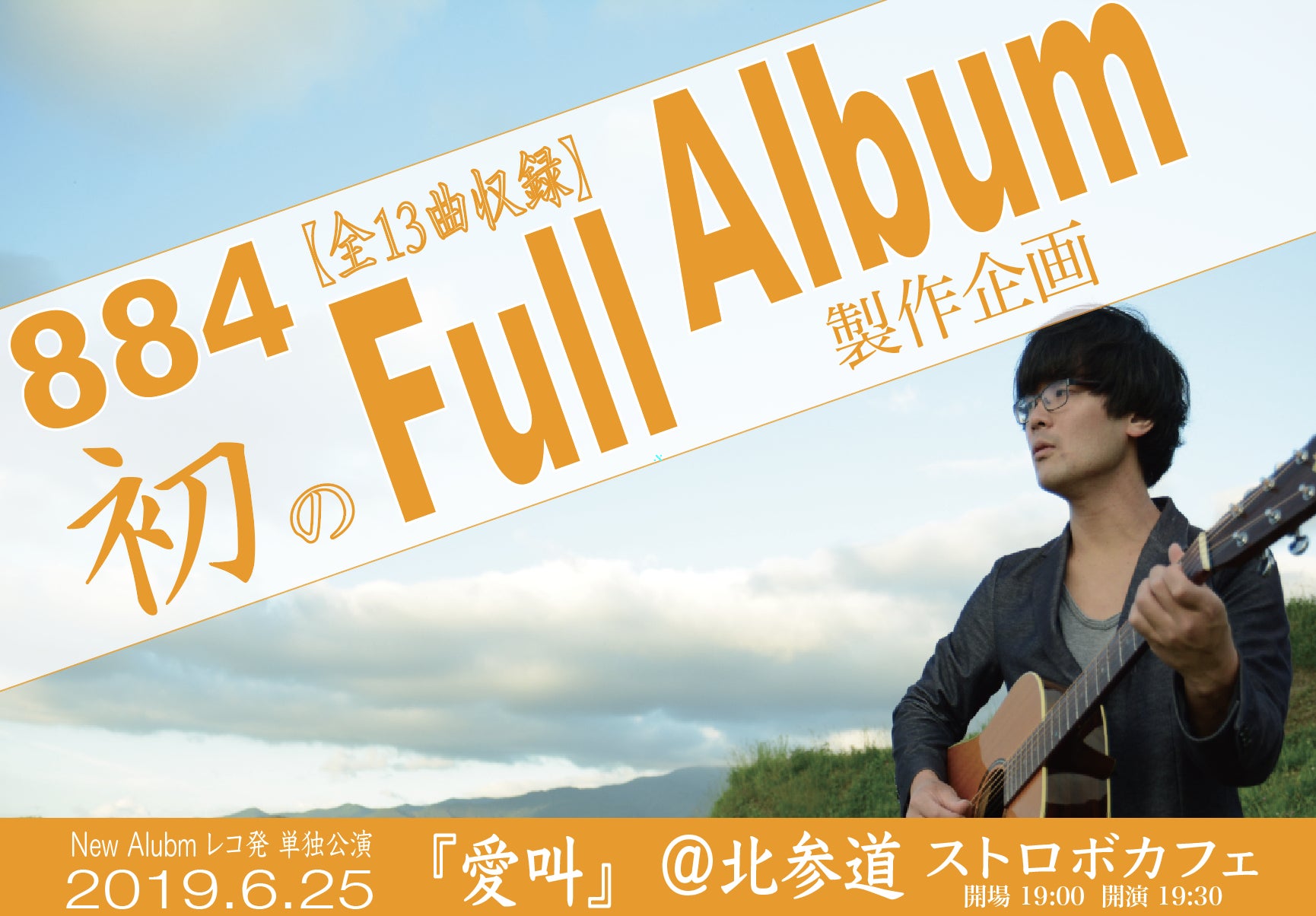 パーカッションから弾き語りに転向して4年、今まで自主制作で作品を作ってきましたが、その中・今までの楽曲の中から選出した、884のベスト、代表作となるようなフルアルバムをみんなで作り上げたいと思っています。