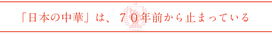 日本における中華料理のラインナップは、およそ70年前から止まっていると言われています。