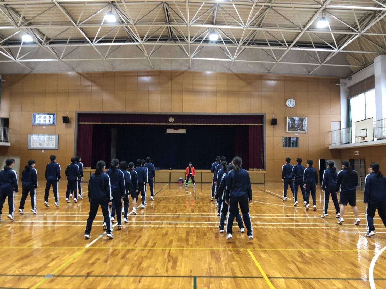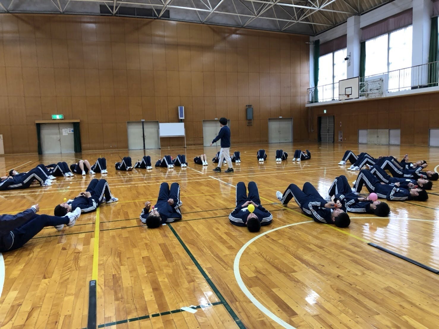 先日は外山トレーナーが愛知県西尾市の中学校で「正しい体幹トレーニング」を指導
