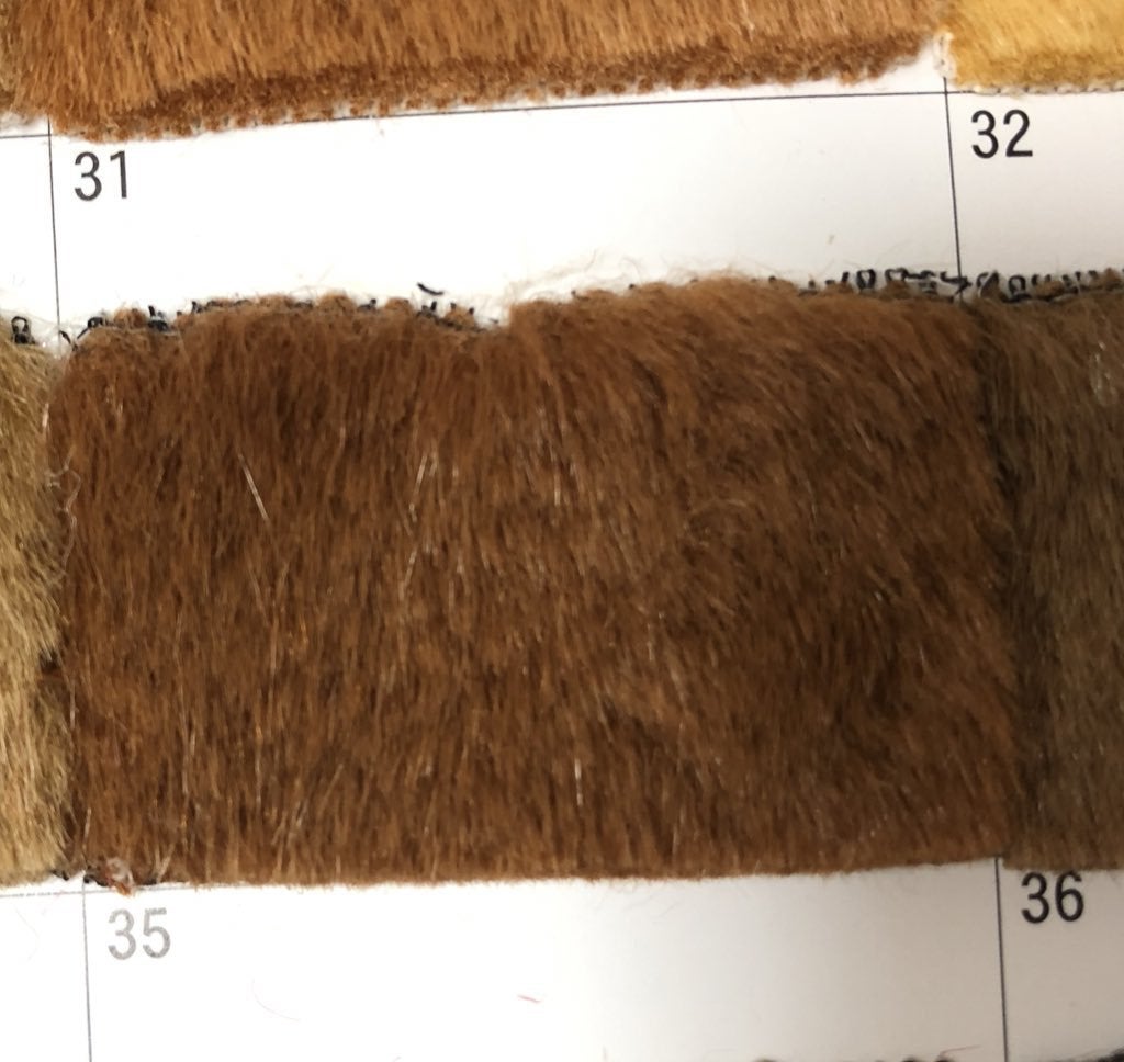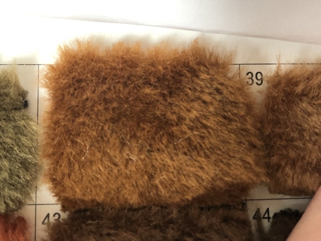 ↑こっちが「ストレッチファー」お口の周りとかに使う生地!!のびのびするみたいアルよ!!光の感じで違うように見えるアルけど、どっちもおんなじ色アルな!!