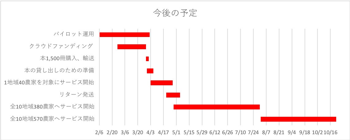 アルファジリの抱える契約農家は10地域、合計570人に及びます。農家から支払われる貸出料は新規図書購入などサービス拡充に使われますので、利用してもらえるほど、新しい本を買うための資金を増やすことができます。継続的に本を購入していき、農家に長期にわたってサービスを利用してもらうことが可能となります。