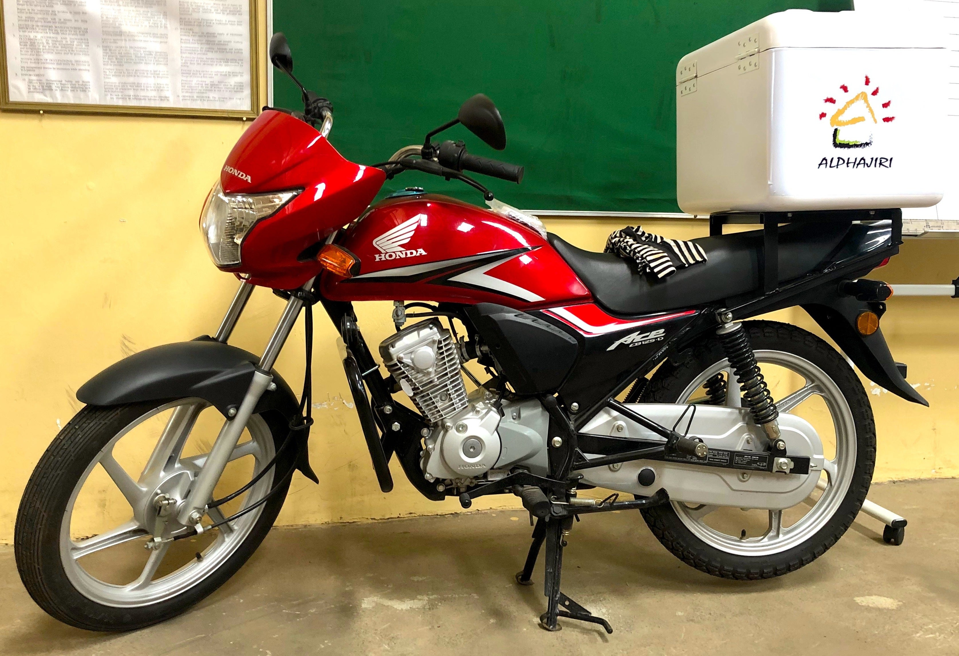 2019/06/01 10:26本田技研工業(株)のケニア法人ホンダモーターサイクルケニア様から移動図書館のためのバイクを寄贈していただきました!!!そしてその受け渡しのためのセレモニーが5月30日に開かれ、プロジェクトメンバーの角本が参加し、無事バイクを頂きました。数日内にバイクはミゴリに運ばれ、農村へ本を届けるために活躍していきます!「企業の社会貢献としてホンダのバイクが農家さんの環境を良くできるなら」セレモニーの様子。寄贈を決定してくださった日本人マネージャーの方と、組み立てを行なったケニア人スタッフの方々。セレモニーには、ナイロビにあるホンダバイクの生産(組立)工事で行われました。日本人のマネージャーの方々と、実際にこのバイクを組み立てたケニア人スタッフの方々が参加され、弊プロジェクトの角本をもてなしていただきました。この寄贈は、マーケティングマネージャーの方にクラウドファンディングのページを見ていただいたことから始まりました。「エリアスーパーバイザーがバイクで本の配送を行なっていて、車両を寄贈できないか」とご提案をいただきました。社内で話し合ったのち、「企業の社会貢献としてホンダのバイクが農家さんの環境を良くできる手段となるなら」という理由でこの寄贈を決定した、とのことでした。輸送のための頑丈な箱を設置さらに、バイクの後ろには、本を運ぶためのボックスと、ホンダとAlphajiriのロゴをつけて頂きました。輸送が楽になり、本を雨から守ることができるため移動図書館としては感謝の限りです。ちなみにこのバイクを使うことになるエリアアドバイザーは、「雨風をしのげる。運びやすくなった!!!」と興奮しっぱなしです。あとホンダのバイクに乗れるので最高に嬉しそうです。改めて、ホンダモーターサイクルの皆様には感謝したいと思います。農村中の子どもたちへ本を届けられるように、頑張っていきます!ありがとうございました!!! もっと見る