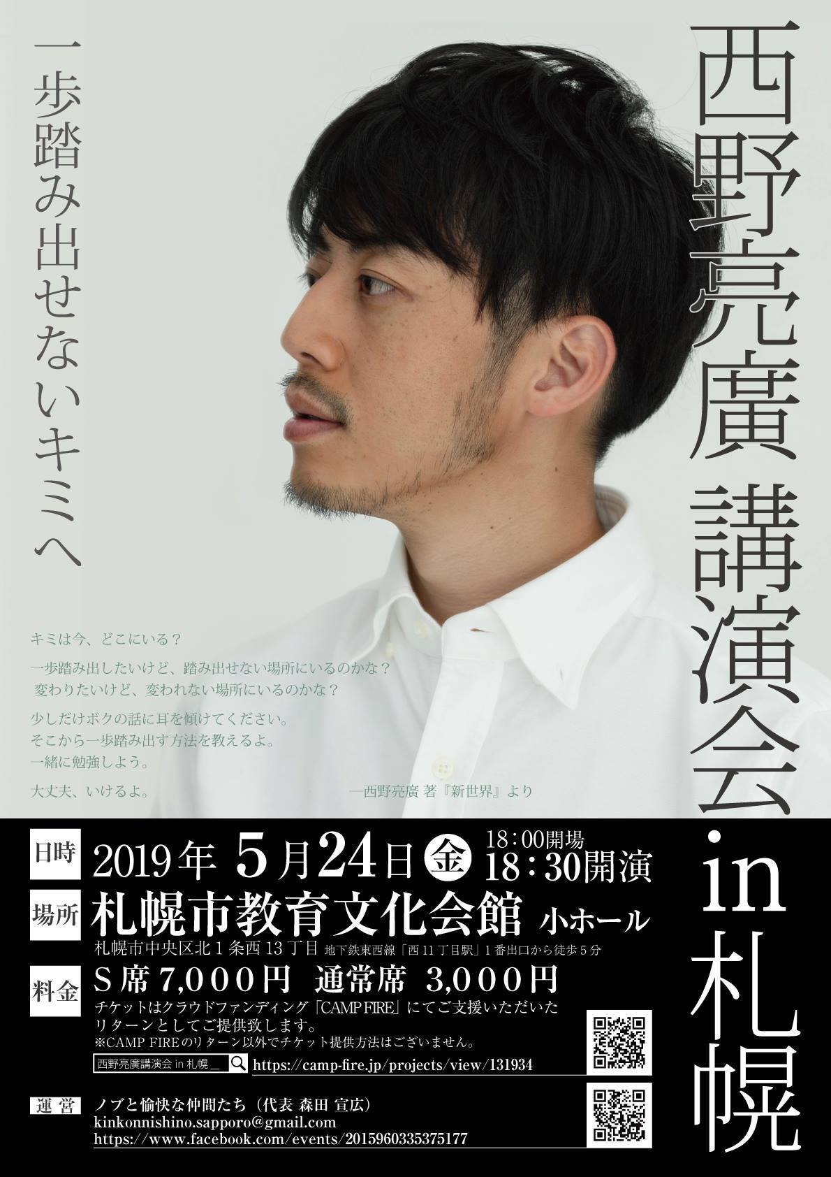 「西野亮廣講演会in札幌」を応援して頂ける方は是非、