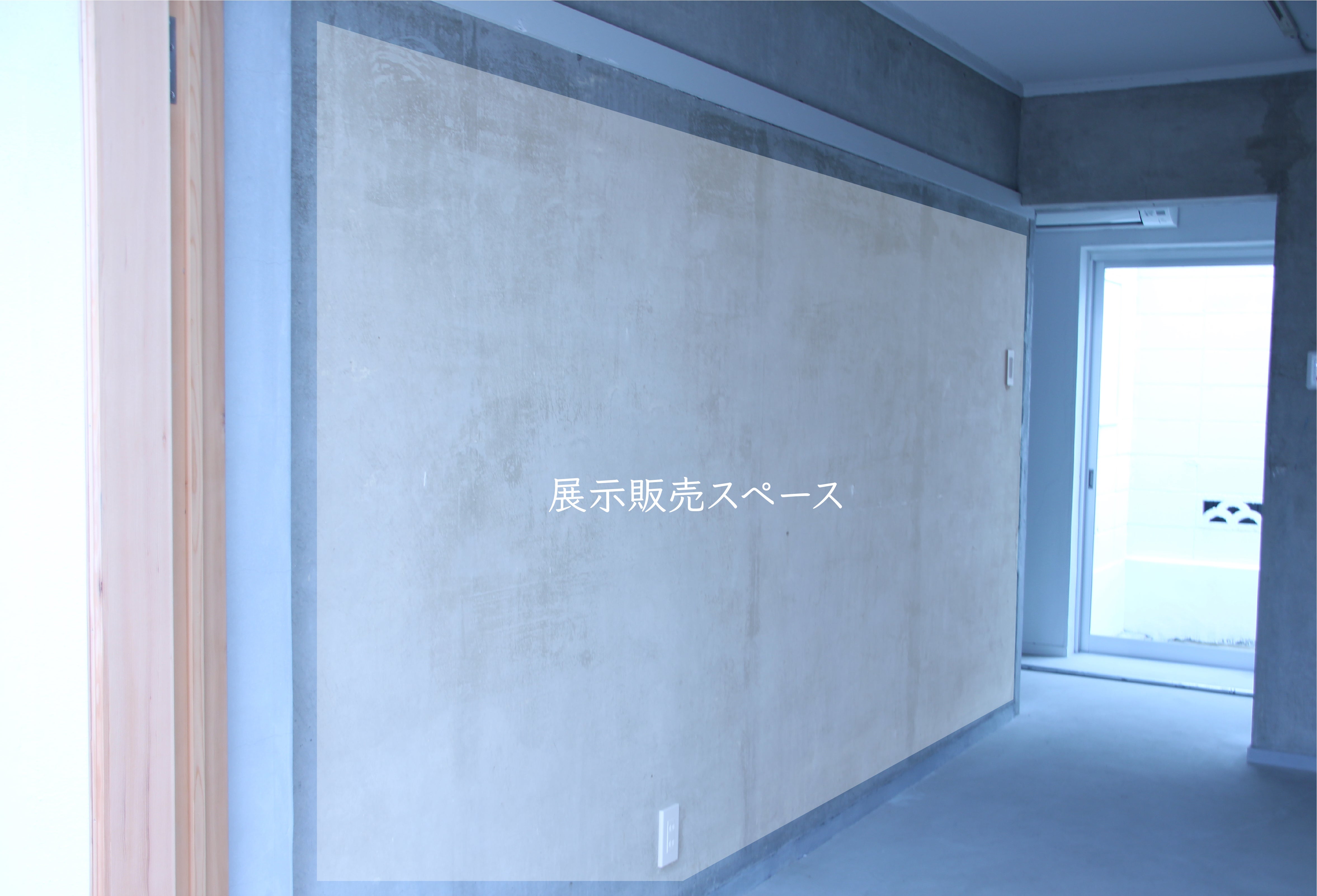 Shelf : 作品の展示棚 (コンクリート打ちっ放しの格好良い壁です)